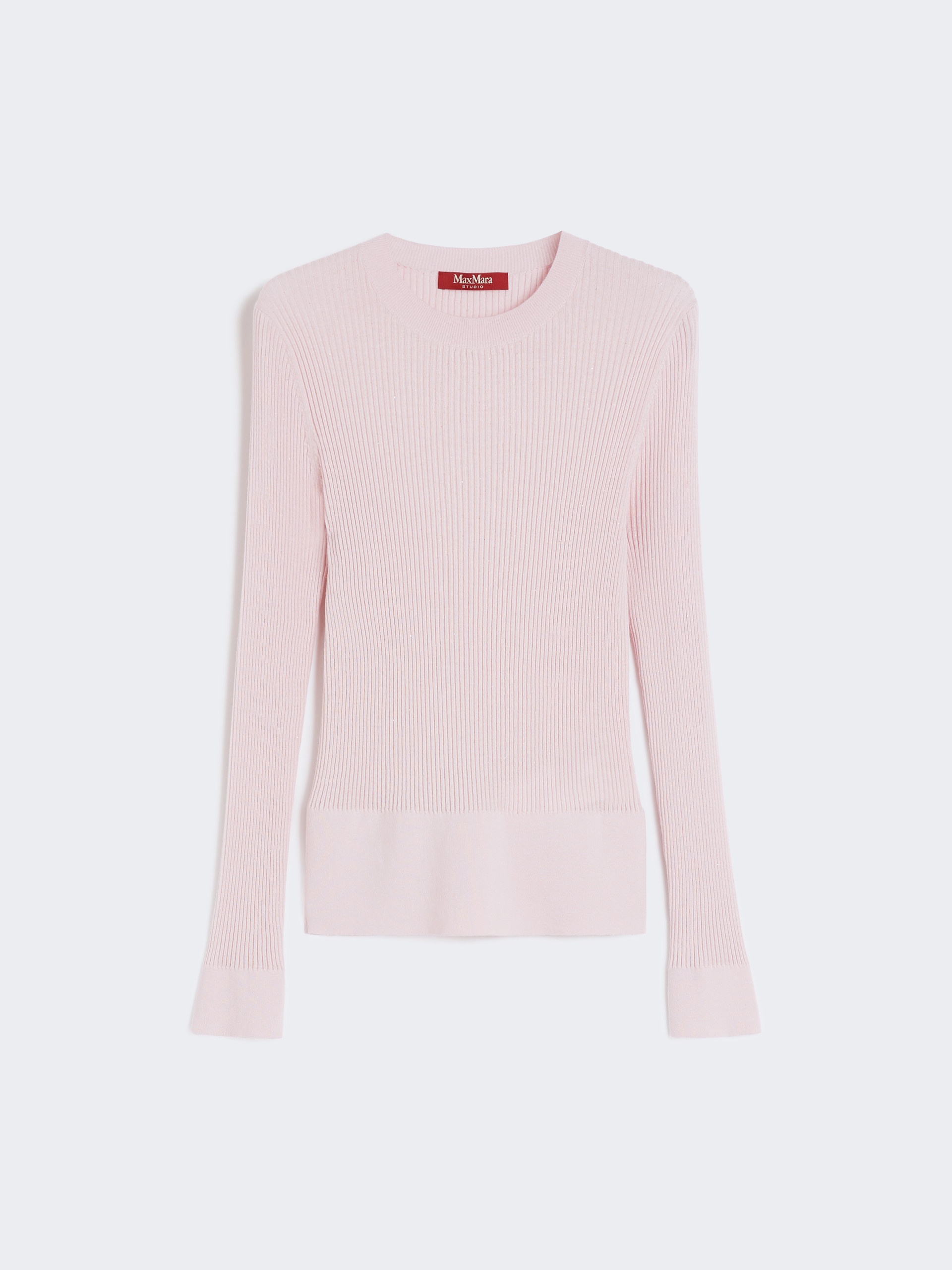 DETAILS Slim fit jumper, embellished with micro sequin embroidery. Silk and wool yarn jumper Figure-hugging Crew neck Long fitted sleeves Wide, ribbed trim COMPOSITION AND CARE Knitted fabric 55% silk, 45% wool; hems 43% silk, 36% wool, 19% polyamide, 2% elastane; - exclusive of decoration. Hand wash cold (40°c max); do not bleach; do not tumble dry; flat drying in the shade; cool iron; professionally dry clean perchloroethylene - mild process; do not wet clean.; iron with a cloth between.; using neutral detergent. Distributed by Max Mara S.r.l., registered office in Reggio Emilia (Italy), Via Giulia Maramotti 4, 42124 (IT)