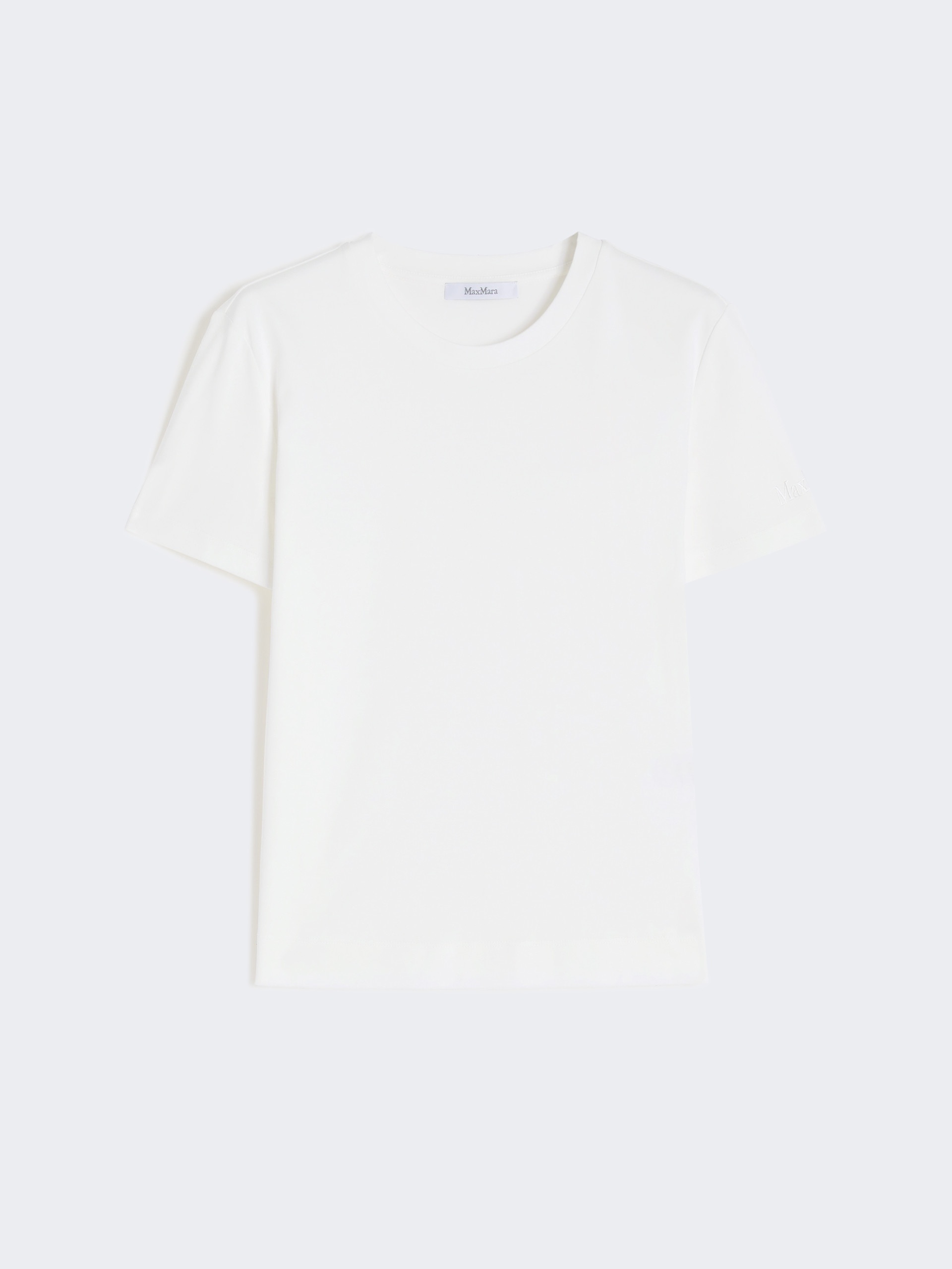 DETAILS Basic T-shirt customised with a matching embroidered logo on the back of the neck. Pure cotton interlock T-shirt Straight cut Crew neck Short sleeves COMPOSITION AND CARE Jersey fabric 100% cotton; - exclusive of embroideries. Machine wash cold delicate cycle; do not bleach; do not tumble dry; flat drying in the shade; cool iron; professionally dry clean perchloroethylene - mild process; professional wet cleaning - very mild process.; iron with a cloth between.; using neutral detergent. Distributed by Max Mara S.r.l., registered office in Reggio Emilia (Italy), Via Giulia Maramotti 4, 42124 (IT)