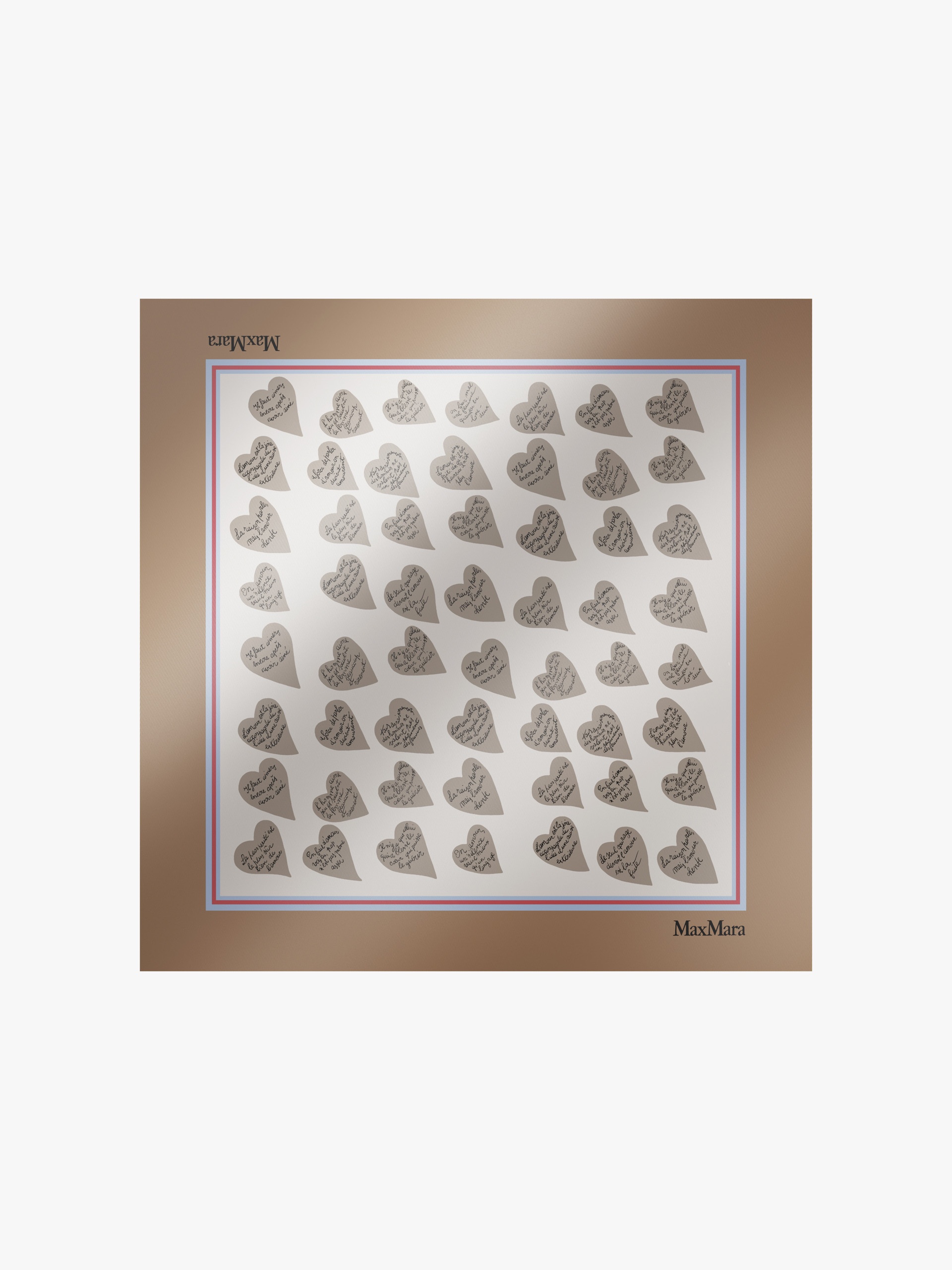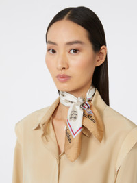 DETAILS Square foulard with all-over print inspired by the collection's sartorial motif. - Pure silk twill foulard - Delicately stitched edges - Measurements: 50 x 50 cm COMPOSITION AND CARE 100% silk. Do not wash; do not bleach; do not tumble dry; cool iron; professionally dry clean perchloroethylene - mild process; do not wet clean. Distributed by Max Mara S.r.l., registered office in Reggio Emilia (Italy), Via Giulia Maramotti 4, 42124 (IT)
