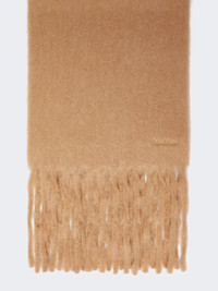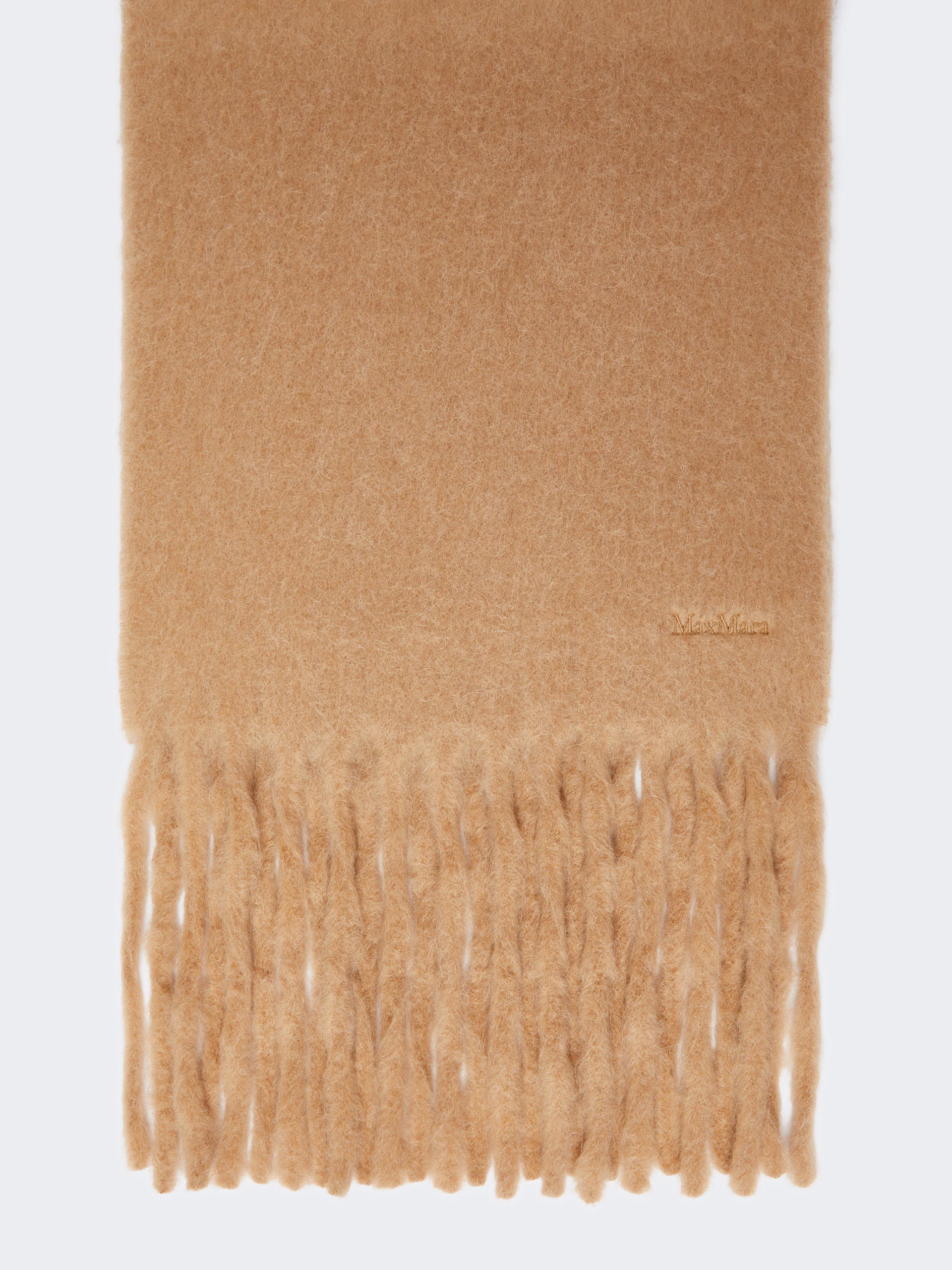 DETAILS Warm and enveloping monochrome scarf featuring tone-on-tone embroidered Max Mara lettering detail at the hem. Plain-coloured alpaca-blend scarf Fringed shorter sides Size: 38 x 235 cm COMPOSITION AND CARE 80% alpaca, 20% polyamide. Do not wash; do not bleach; do not tumble dry; cool iron; professionally dry clean perchloroethylene - mild process; do not wet clean. Distributed by Max Mara S.r.l., registered office in Reggio Emilia (Italy), Via Giulia Maramotti 4, 42124 (IT)