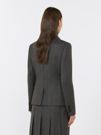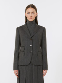 DETAILS A tailored jacket reinterpreting the classic varsity model. Features a structured, menswear-inspired, single-breasted silhouette designed to enhance your figure, combining comfort with practicality. Women's flannel jacket in stretch wool, fully lined Slightly fitted silhouette with rear slit Classic lapel collar Set-in sleeves with buttoned hem detail Three-button front fastening Breast welt pocket and three front flap pockets COMPOSITION AND CARE Fabric 99% virgin wool, 1% elastane; lining 70% acetate, 30% polyester. Do not wash; do not bleach; do not tumble dry; cool iron; professionally dry clean perchloroethylene - mild process; do not wet clean.; do not iron the buttons.; protect buttons before washing.; contains non-textile parts of animal origin. Distributed by Max Mara S.r.l., registered office in Reggio Emilia (Italy), Via Giulia Maramotti 4, 42124 (IT)