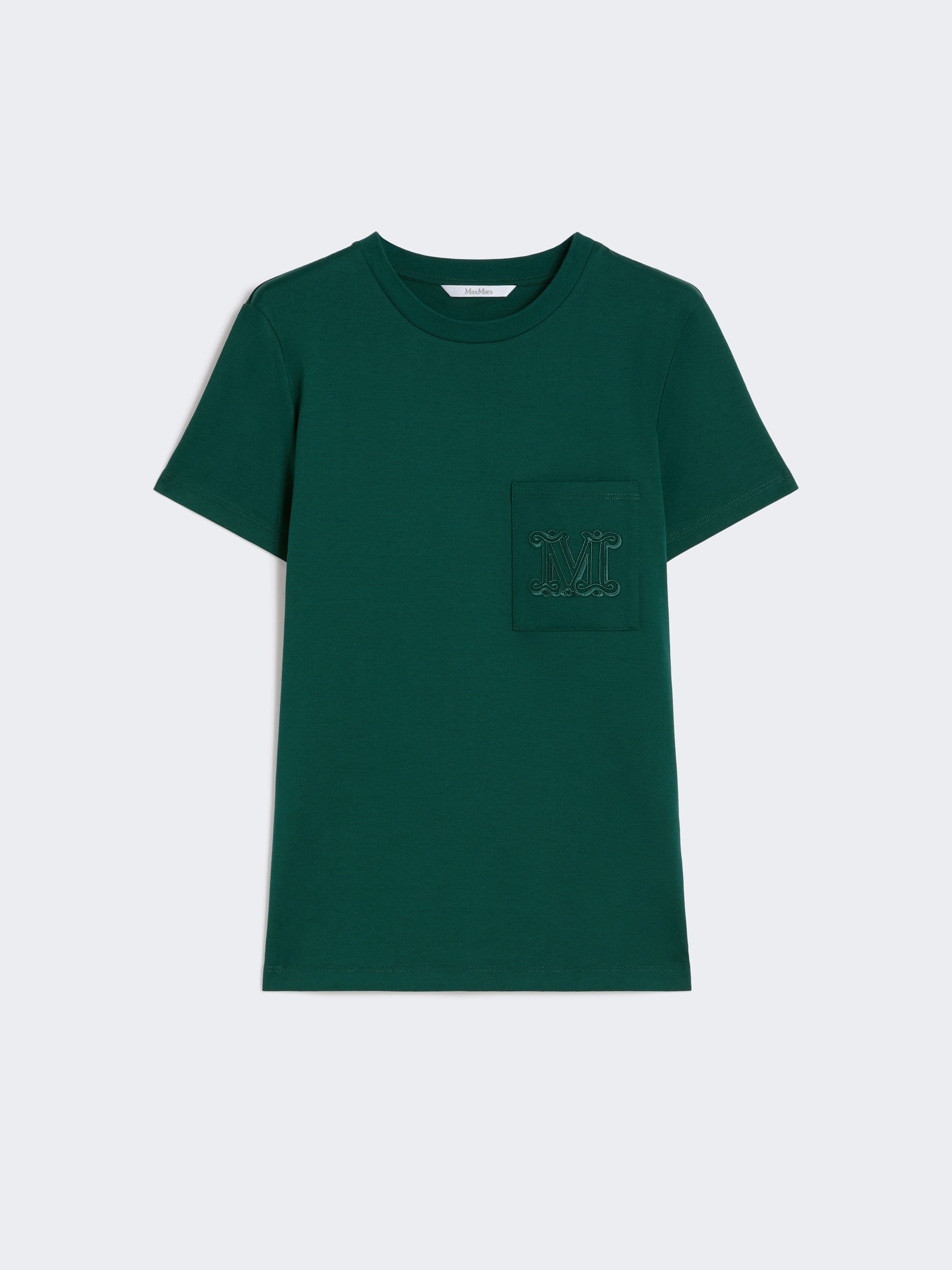 DETAILS Straight-cut T-shirt with chest pocket and matching embroidered M Monogram detail. Pure cotton jersey T-shirt Regular fit Ribbed neckline Short set-in sleeves COMPOSITION AND CARE Jersey fabric 100% cotton; - exclusive of embroideries. Machine wash cold delicate cycle; do not bleach; do not tumble dry; flat drying in the shade; cool iron; professionally dry clean perchloroethylene - mild process; professional wet cleaning - very mild process.; iron with a cloth between.; using neutral detergent.; turn the articles inside out before washing.; to be ironed on reverse. Distributed by Max Mara S.r.l., registered office in Reggio Emilia (Italy), Via Giulia Maramotti 4, 42124 (IT)