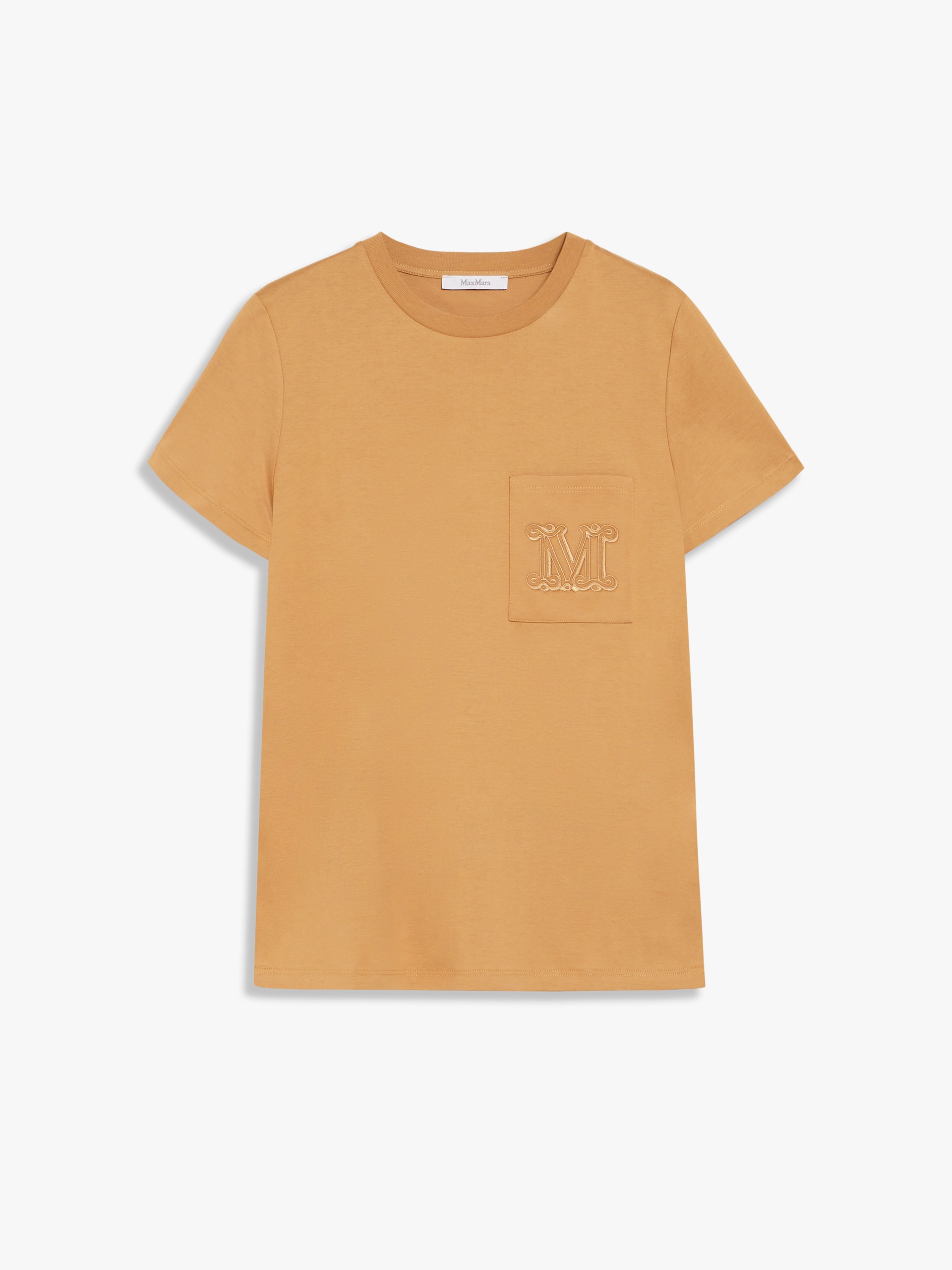 DETAILS Straight-cut T-shirt with chest pocket and matching embroidered M monogram detail. Pure cotton jersey T-shirt Regular fit Ribbed neckline Short set-in sleeves COMPOSITION AND CARE Jersey fabric 100% cotton; - exclusive of embroideries. Machine wash cold delicate cycle; do not bleach; do not tumble dry; flat drying in the shade; cool iron; professionally dry clean perchloroethylene - mild process; professional wet cleaning - very mild process.; iron with a cloth between.; using neutral detergent.; turn the articles inside out before washing.; to be ironed on reverse. Distributed by Max Mara S.r.l., registered office in Reggio Emilia (Italy), Via Giulia Maramotti 4, 42124 (IT)