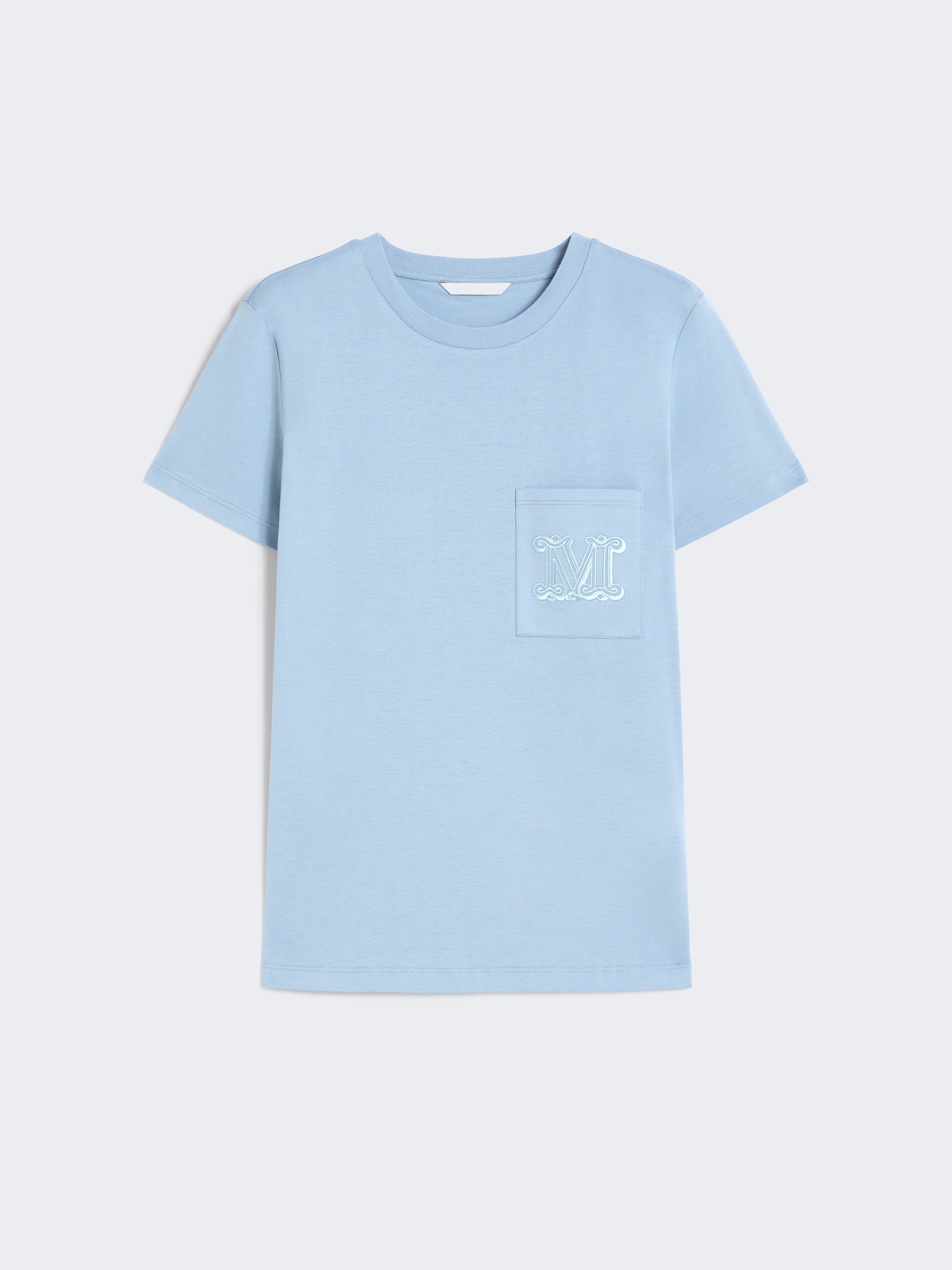 DETAILS Straight-cut T-shirt with chest pocket and matching embroidered M Monogram detail. Pure cotton jersey T-shirt Regular fit Ribbed neckline Short set-in sleeves COMPOSITION AND CARE Jersey fabric 100% cotton; - exclusive of embroideries. Machine wash cold delicate cycle; do not bleach; do not tumble dry; flat drying in the shade; cool iron; professionally dry clean perchloroethylene - mild process; professional wet cleaning - very mild process.; iron with a cloth between.; using neutral detergent.; turn the articles inside out before washing.; to be ironed on reverse. Distributed by Max Mara S.r.l., registered office in Reggio Emilia (Italy), Via Giulia Maramotti 4, 42124 (IT)