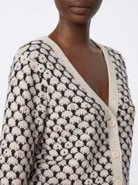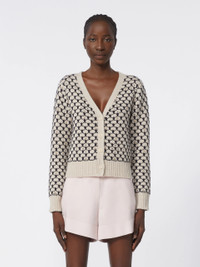 DETAILS Fancy-knit cardigan featuring hand-embroidered detail and all-over rhinestone appliques. - Cardigan in fine wool and cashmere yarn - Boxy lines with a slightly cropped cut - V-neckline - Long set-in sleeves - Front fastening with four horn buttons - Ribbed edges COMPOSITION AND CARE Knitted fabric 70% wool, 30% cashmere; embroidery thread 70% wool, 30% cashmere; - exclusive of decoration. Hand wash cold (40°c max); do not bleach; do not tumble dry; flat drying in the shade; cool iron; do not dry clean; do not wet clean.; iron with a cloth between.; using neutral detergent. Distributed by Max Mara S.r.l., registered office in Reggio Emilia (Italy), Via Giulia Maramotti 4, 42124 (IT) Collection: Max Mara Product code: 1341036106018 - MXMMASTRO