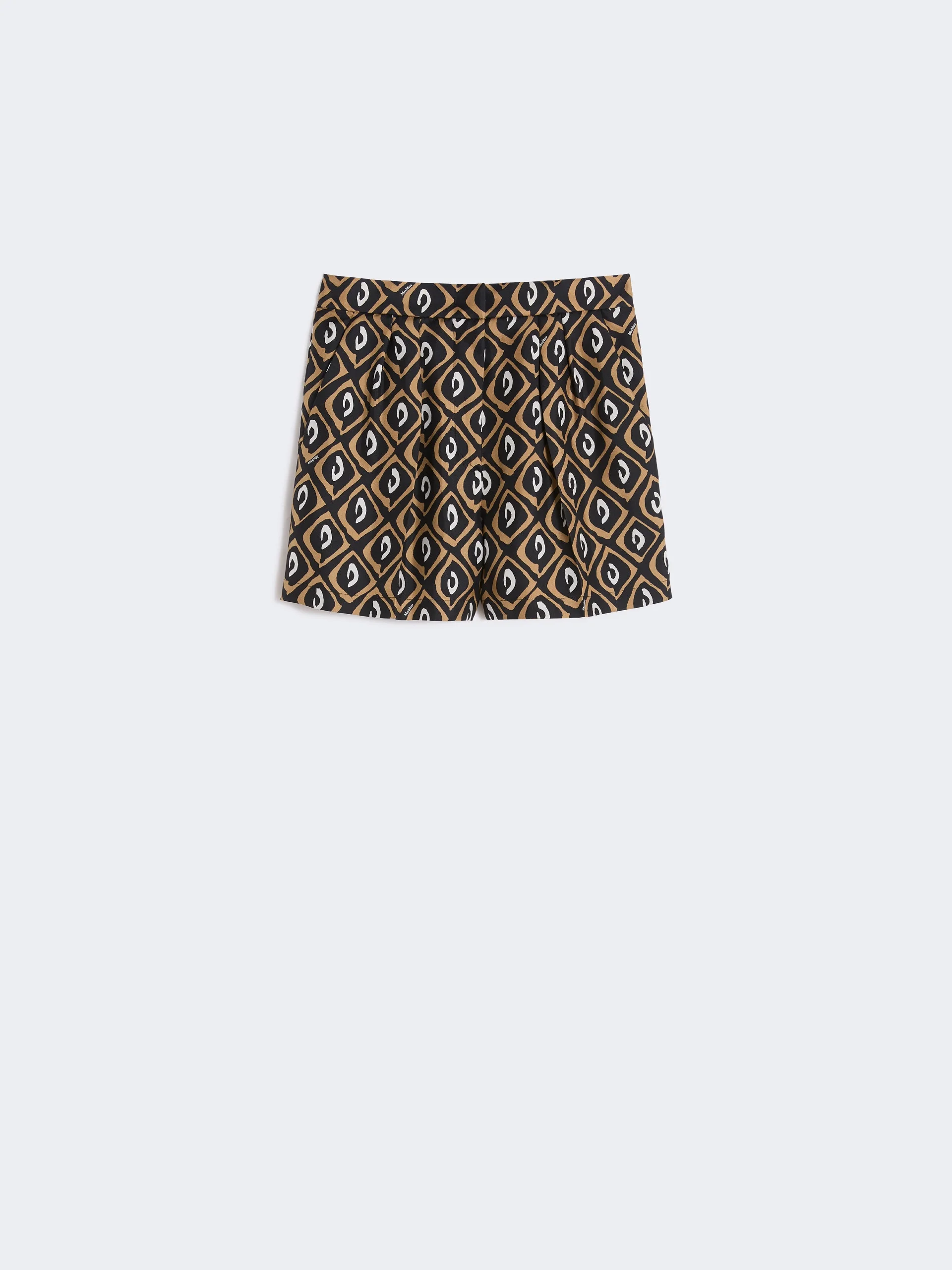DETAILS High-waisted shorts, customised with Max Mara logo embroidered on the back waist. - Printed pure silk shorts - Slightly flared line with double pleat on the front - Wide waistband tab closure with zip fly and hooks - Slant pockets on the hips - Trouser crease and darts at the back waist - Unlined COMPOSITION AND CARE Fabric 100% silk; lining 85% acetate, 10% silk, 5% polyamide. Do not wash; do not bleach; do not tumble dry; cool iron; professionally dry clean perchloroethylene - mild process; do not wet clean.; protect buttons before washing. Distributed by Max Mara S.r.l., registered office in Reggio Emilia (Italy), Via Giulia Maramotti 4, 42124 (IT) Collection: Max Mara Product code: 1141026206001 - MXMQUINOA