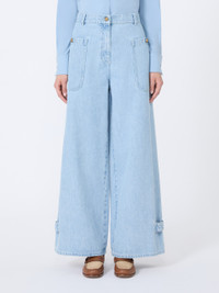 DETAILS Menswear-inspired jeans. Loose fit, adjustable with ankle cuff straps. The main fabric contains at least 50% cotton fibre, grown according to organic farming standards Garment-treated indigo denim trousers Logo button and zip fastening Patch pockets with buttons on the sides Belt loops, peplum on the waist back Customised label on the waist back COMPOSITION AND CARE 100% cotton. Machine wash cold delicate cycle; do not bleach; do not tumble dry; line drying in the shade; cool iron; do not dry clean.; wash the garment while it is fastened.; don’t iron the labels.; protect buttons before washing.; turn the articles inside out before washing.; take care when wearing light-coloured clothes or accessories because, with the heat of the body, the indigo fabric , may fade and stain. be careful while sitting on light coloured surfaces, especially if wet. wash garments separately and always turned inside out. hang the garment turned inside out by avoiding to expose it to direct sunlight. avoid removing isolated stains.; contains non-textile parts of animal origin. Distributed by Max Mara S.r.l., registered office in Reggio Emilia (Italy), Via Giulia Maramotti 4, 42124 (IT)