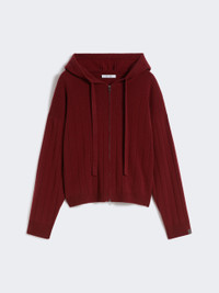 DETAILS Cardigan with drawstring hood and slightly cropped waist in an all-over wide-rib knit. Pure cashmere yarn cardigan Comfortable fit and straight lines Long sleeves with dropped shoulders Front fastening with double slider zip Leather logo label on the left cuff Ribbed trim COMPOSITION AND CARE 100% cashmere. Hand wash cold (40°c max); do not bleach; do not tumble dry; flat drying in the shade; cool iron; professionally dry clean perchloroethylene - mild process; do not wet clean.; iron with a cloth between.; using neutral detergent. Distributed by Max Mara S.r.l., registered office in Reggio Emilia (Italy), Via Giulia Maramotti 4, 42124 (IT)