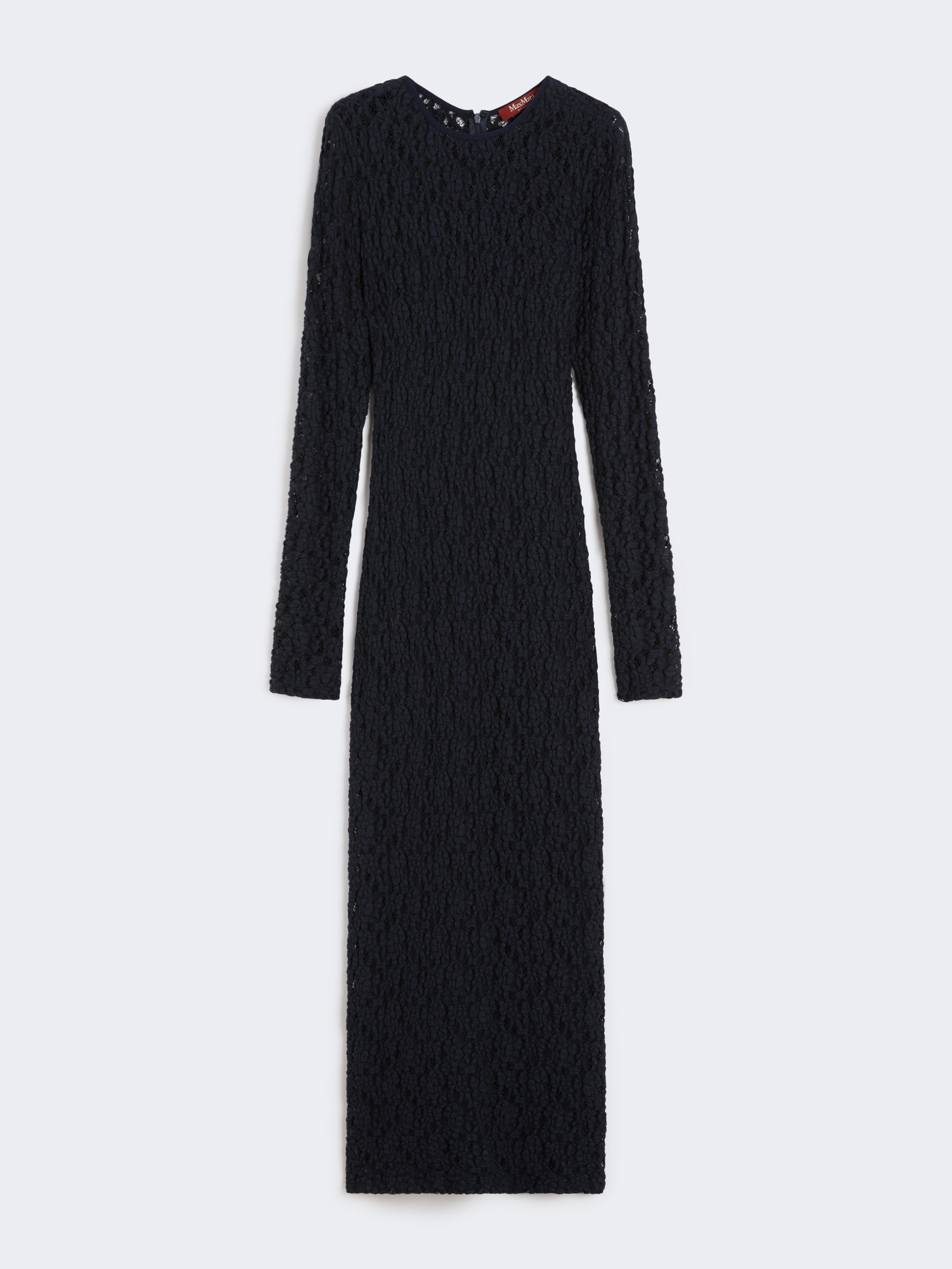 DETAILS Long dress with a sensual and feminine silhouette. - Stretch cotton cloque lace dress - Figure-hugging - Crew neck - Long fitted sleeves - Back concealed zip fastening - Matching slip COMPOSITION AND CARE Jersey dress 77% cotton, 19% polyamide, 4% elastane. Petticoat 100% polyester. Jersey dress: do not wash; do not bleach; do not tumble dry; cool iron; professionally dry clean perchloroethylene - mild process; do not wet clean.; Iron with a cloth between.; Just steam it. Petticoat: machine wash cold delicate cycle; do not bleach; do not tumble dry; flat drying in the shade; cool iron; professionally dry clean perchloroethylene - mild process; professional wet cleaning - very mild process.; Iron with a cloth between.; Using neutral detergent. Distributed by Max Mara S.r.l., registered office in Reggio Emilia (Italy), Via Giulia Maramotti 4, 42124 (IT)