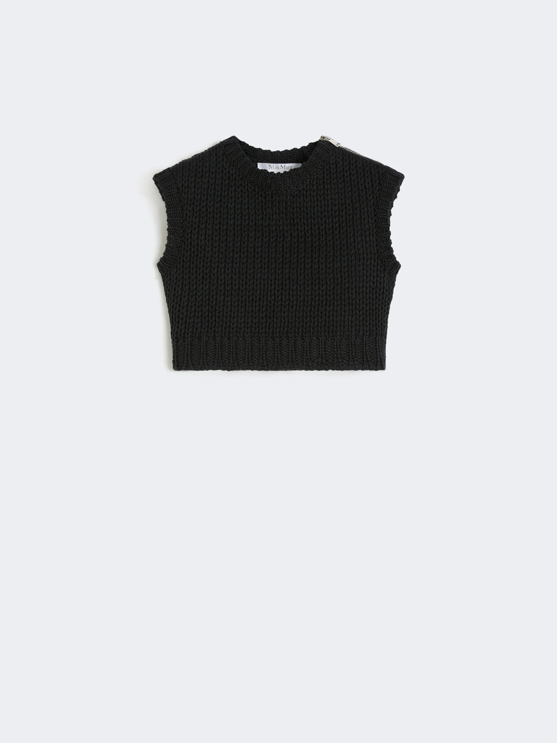 DETAILS Sleeveless cropped jumper with zip opening on the shoulder and left side. - Regular fit - Plain-knit cotton jumper - Bonded with a lightweight jersey mesh - Crew neck - Metal zip with custom Max Mara sliders COMPOSITION AND CARE Outer fabric 100% cotton; inner fabric 100% polyester. Do not wash; do not bleach; do not tumble dry; cool iron; professionally dry clean perchloroethylene - mild process; do not wet clean.; iron with a cloth between. Distributed by Max Mara S.r.l., registered office in Reggio Emilia (Italy), Via Giulia Maramotti 4, 42124 (IT) Collection: Runway Product code: 1361486306001 - MXSVOLTO
