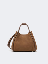 DETAILS Marine handbag featuring a rounded shape and versatile dimensions, thanks to the strap-securing extendable sides and split ring on the inside. - Nubuck leather bag with smooth leather details - Soft-textured interior with zip pocket and patch pocket - Tubular handles held by a snap button bracelet - Removable shoulder strap that attaches to the internal side rings - Max Mara lettering on the front and 5 metal bag feet - Magnetic snap fastening at the top - Measurements: 27.5 x 22 x 27.5 cm COMPOSITION AND CARE Handbag in calf; lining in 60 nylon, 40 polyurethane. Distributed by Max Mara S.r.l., registered office in Reggio Emilia (Italy), Via Giulia Maramotti 4, 42124 (IT) Collection: MaxMara Accessori Product code: 4511116106002 - MXAMARINESSUE
