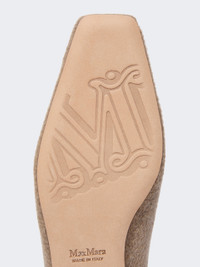 DETAILS Ballerinas with square toe and collapsible back that can also be worn as a sabot. Ballerinas in lightweight, water-repellent pure cashmere drap Nappa-leather lining Crossover neckline with hand-stitched detail Heel in soft natural calfskin with a mottled effect Leather sole with non-slip Monogram detail 1 cm slide heel COMPOSITION AND CARE Upper in 100% cashmere; upper in calf; lining in lamb leather; sole in leather. Distributed by Max Mara S.r.l., registered office in Reggio Emilia (Italy), Via Giulia Maramotti 4, 42124 (IT)