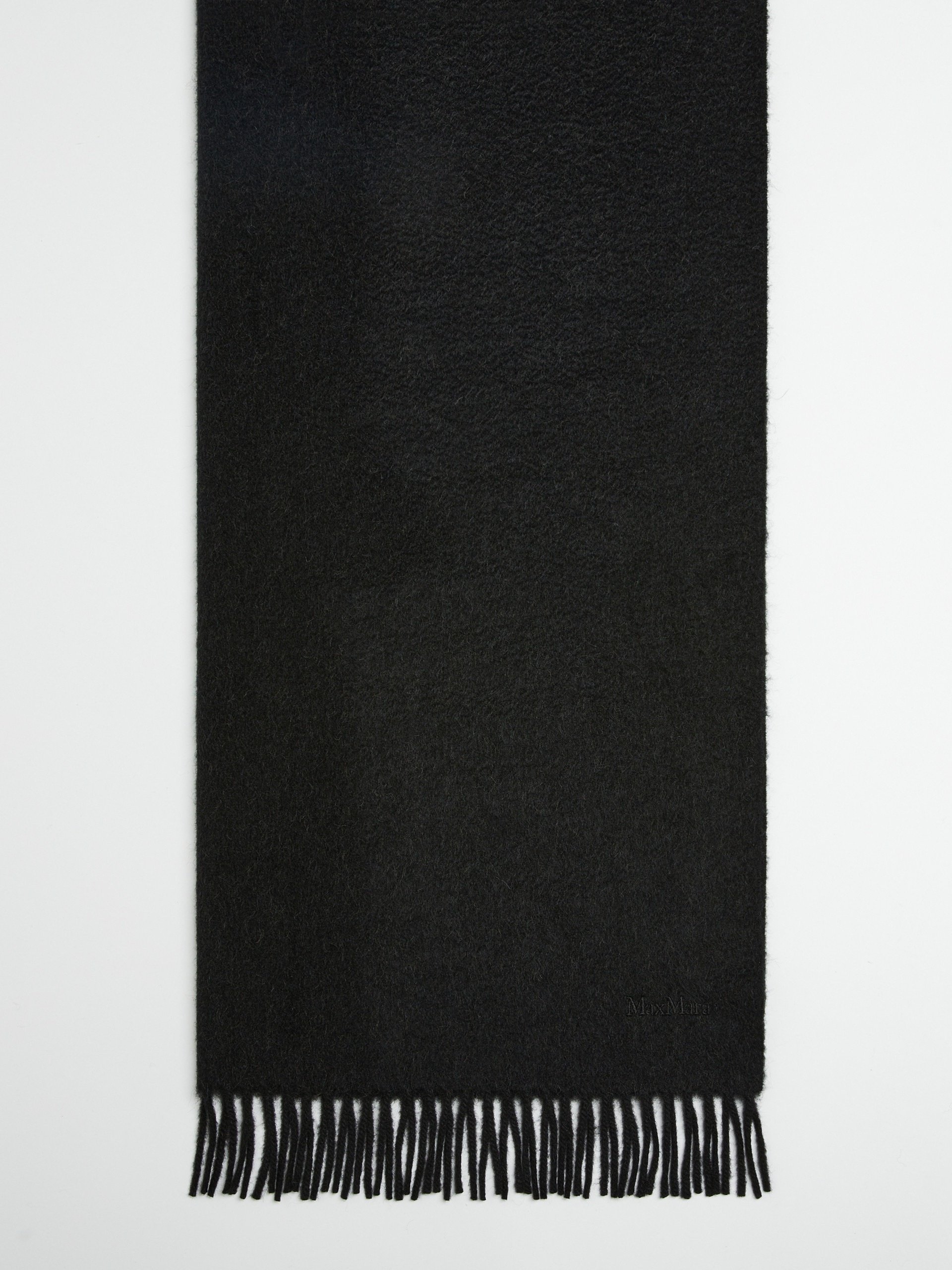 DETAILS Wide and enveloping stole featuring embroidered Max Mara lettering detail at the hem. Pure camel stole Fringed detail at the end Size: 70 x 260 cm COMPOSITION AND CARE 100% camelwool. Do not wash; do not bleach; do not tumble dry; cool iron; professionally dry clean perchloroethylene - mild process; do not wet clean.; to be ironed on reverse.; to be ironed with no steam.; iron with a cloth between. Distributed by Max Mara S.r.l., registered office in Reggio Emilia (Italy), Via Giulia Maramotti 4, 42124 (IT)