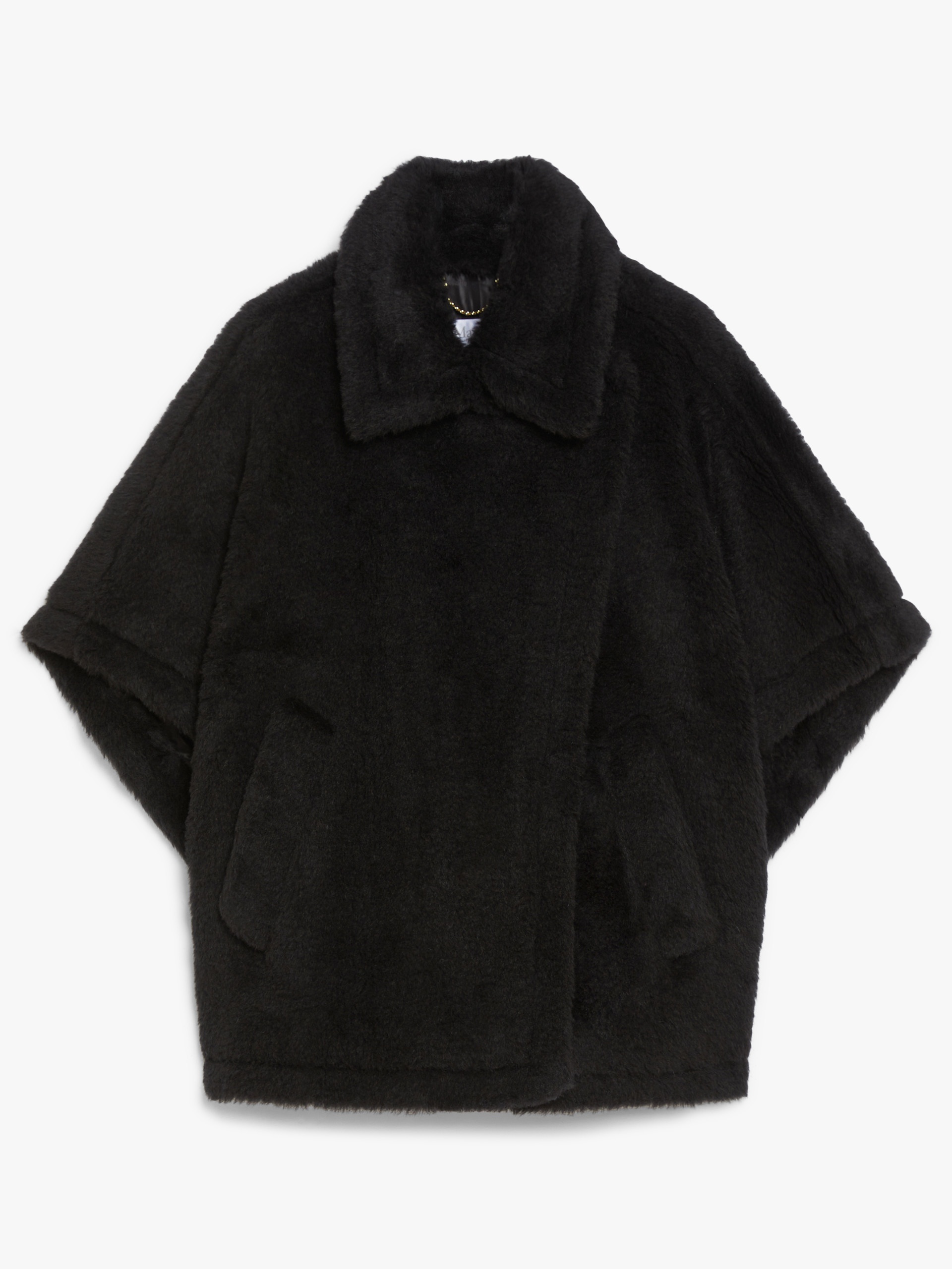 DETAILS Short cape featuring an enveloping fit and side slits. Cape in alpaca and wool Teddy fabric, set on a silk base The 2-in-1 collar can either be worn open with the lapels visible or buttoned up Short kimono sleeves Asymmetrical button fastening Diagonal-welt pockets at the sides Viscose lining COMPOSITION AND CARE Jersey fabric 62% alpaca, 26% virgin wool, 12% silk; lining 100% viscose. Do not wash; do not bleach; do not tumble dry; do not iron; professionally dry clean perchloroethylene - mild process; do not wet clean. Distributed by Max Mara S.r.l., registered office in Reggio Emilia (Italy), Via Giulia Maramotti 4, 42124 (IT)
