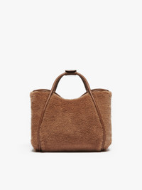 DETAILS Small Marine bag featuring a rounded shape and versatile dimensions, thanks to the strap-securing extendable sides and split ring on the inside. Handbag in camel Teddy fabric, set on a silk base Soft-textured interior, zipped pocket and a branded open pocket Tubular handles with loop detail and a removable and adjustable shoulder strap Cameluxe padding and smooth leather details Max Mara lettering on the front and 5 metal bag feet Magnetic snap fastening at the top Size: 37 x 22 x 24 cm COMPOSITION AND CARE Handbag in 88% camelwool, 12% silk; with details in cattle; with quilting in 48% polyester, 48% camelwool, 4% silk; lining in 100%polyester. Do not wash; do not bleach; do not tumble dry; do not iron; do not dry clean; do not wet clean. Distributed by Max Mara S.r.l., registered office in Reggio Emilia (Italy), Via Giulia Maramotti 4, 42124 (IT)