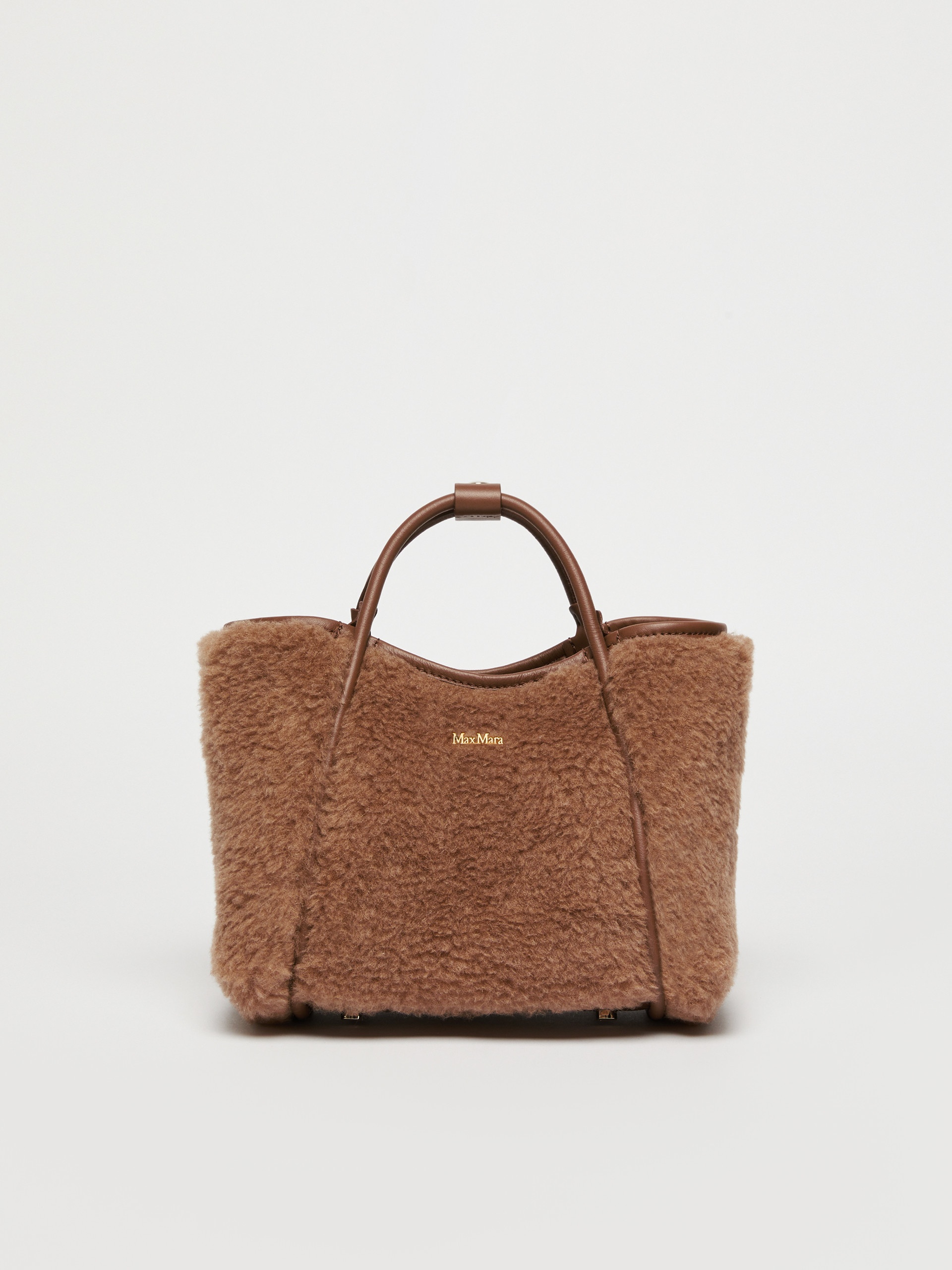 DETAILS Extra small Marine bag that features versatile volumes, thanks to the sides that fold away with an internal ring to hang small leather items. Handbag in camel colour teddy fabric on a silk base Soft-textured interior, zip pocket and customised open pocket Tubular handles with loop and removable adjustable strap Cameluxe padding and smooth leather details Max Mara lettering on the front and four metal feet Magnetic clasp on top Measurements: 24 x 16 x 15 cm COMPOSITION AND CARE Handbag in 88% camelwool, 12% silk; with details in cattle; with quilting in 48% polyester, 48% camelwool, 4% silk; lining in 100%polyester. Do not wash; do not bleach; do not tumble dry; do not iron; do not dry clean; do not wet clean. Distributed by Max Mara S.r.l., registered office in Reggio Emilia (Italy), Via Giulia Maramotti 4, 42124 (IT)