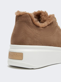 DETAILS Urban trainers with essential lines, customised with a metal M Monogram lace lock inserted between the laces. Suede trainers Visible interior in camel teddy on silk base Comfortable and enveloping internal footbed Rubber sole customised with oversized M Monogram Max Mara rubber label on the back of the heel COMPOSITION AND CARE Upper in calf; with details in 88% camelwool, 12% silk; lining in 88% camelwool, 12% silk; sole in rubber. Distributed by Max Mara S.r.l., registered office in Reggio Emilia (Italy), Via Giulia Maramotti 4, 42124 (IT)