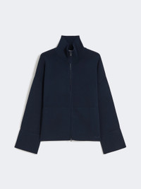 DETAILS Boxy cardigan featuring a high neck and wide cuffs with gold-coloured ball button. - The main fabric of this garment contains at least 50% raw materials derived from wood cellulose, a fibre sourced responsibly from forests - Cardigan made of viscose crepe yarn in an interlock stitch knit - Regular volume with horizontal seam at the back - Long sleeves with dropped shoulders - Front fastening with double slider zip - Patch pockets and embroidered logo on the left side COMPOSITION AND CARE Knitted fabric 65% viscose, 35% polyamide; - exclusive of embroideries. Hand wash cold (40°c max); do not bleach; do not tumble dry; flat drying in the shade; cool iron; professionally dry clean perchloroethylene - mild process; do not wet clean.; iron with a cloth between.; using neutral detergent.; protect buttons before washing.; turn the articles inside out before washing. Distributed by Max Mara S.r.l., registered office in Reggio Emilia (Italy), Via Giulia Maramotti 4, 42124 (IT) Collection: Max Mara Product code: 1341016806004 - MXPFORMATO