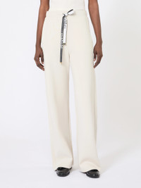 DETAILS Relaxed-fit technical-feel trousers. - Cotton jersey trousers - Wide leg - Elasticated waist with a jacquard ribbon drawstring - In-seam side pockets - Welt pocket on the back right-hand side COMPOSITION AND CARE 78% cotton, 22% polyester. Machine wash cold delicate cycle; do not bleach; do not tumble dry; flat drying in the shade; cool iron; professionally dry clean perchloroethylene - mild process; professional wet cleaning - very mild process.; iron with a cloth between.; using neutral detergent.; protect accessories before washing.; turn the articles inside out before washing.; to be ironed on reverse. Distributed by Max Mara S.r.l., registered office in Reggio Emilia (Italy), Via Giulia Maramotti 4, 42124 (IT) Collection: 'S Max Mara Product code: 9781056106001 - SMMBALI