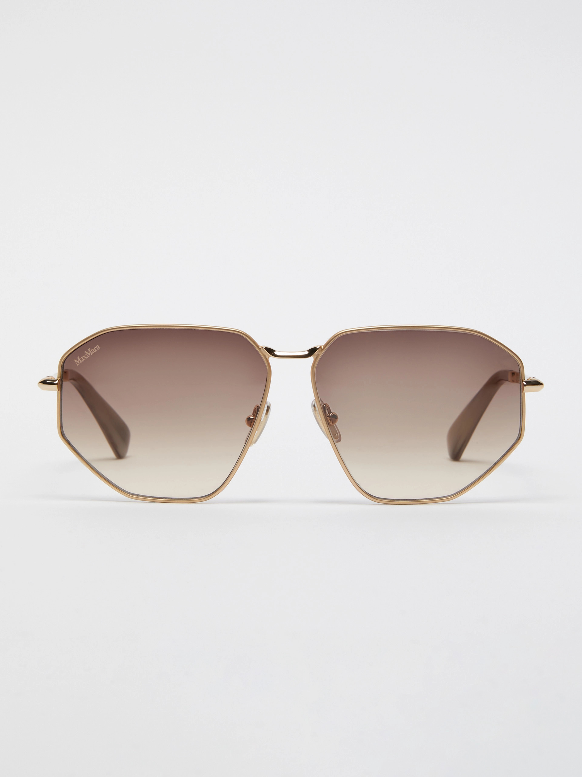 DETAILS Vintage geometric design, reinterpreted in Max Mara style. These sunglasses stand out thanks to their light profiles and iconic details. - Metallic sunglasses - Adjustable nose pads - Thin nose pads and temples with acetate tips - Maxim detail on the bridge - Max Mara logo on the side of the temples - Suitable for varifocal lenses COMPOSITION AND CARE Metal. Distributed by Max Mara S.r.l., registered office in Reggio Emilia (Italy), Via Giulia Maramotti 4, 42124 (IT) Collection: Eyewear Product code: 4806095606002 - MILLER4