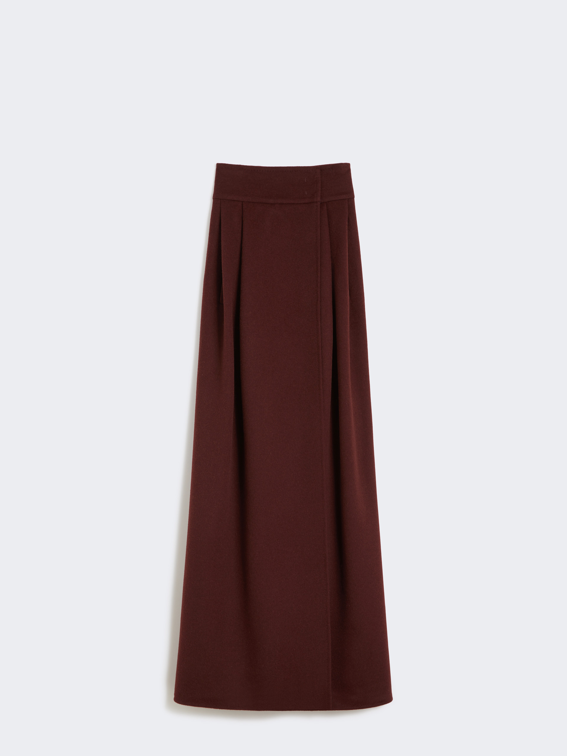 DETAILS Long faux-wrap skirt with high waistband and symmetrical pleated pattern on the front. Skirt in lightweight baby camel zibeline drap High-waisted style, slightly flared at the hem Back zip fastening Slant pockets at the sides Lined COMPOSITION AND CARE Fabric 100% camelwool; lining 95% acetate, 5% elastane. Do not wash; do not bleach; do not tumble dry; cool iron; professionally dry clean perchloroethylene - mild process; do not wet clean. Distributed by Max Mara S.r.l., registered office in Reggio Emilia (Italy), Via Giulia Maramotti 4, 42124 (IT)