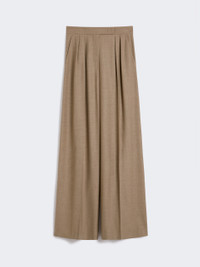 DETAILS Menswear-style trousers with double pleats on the front waist. Stretch cashmere foule trousers Wide leg Fastening with a wide waistband tab, zip fly and small hook Slant pockets at the sides Trouser crease COMPOSITION AND CARE 96% cashmere, 4% elastane. Do not wash; do not bleach; do not tumble dry; cool iron; professionally dry clean perchloroethylene - mild process; do not wet clean.; protect buttons before washing. Distributed by Max Mara S.r.l., registered office in Reggio Emilia (Italy), Via Giulia Maramotti 4, 42124 (IT)