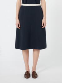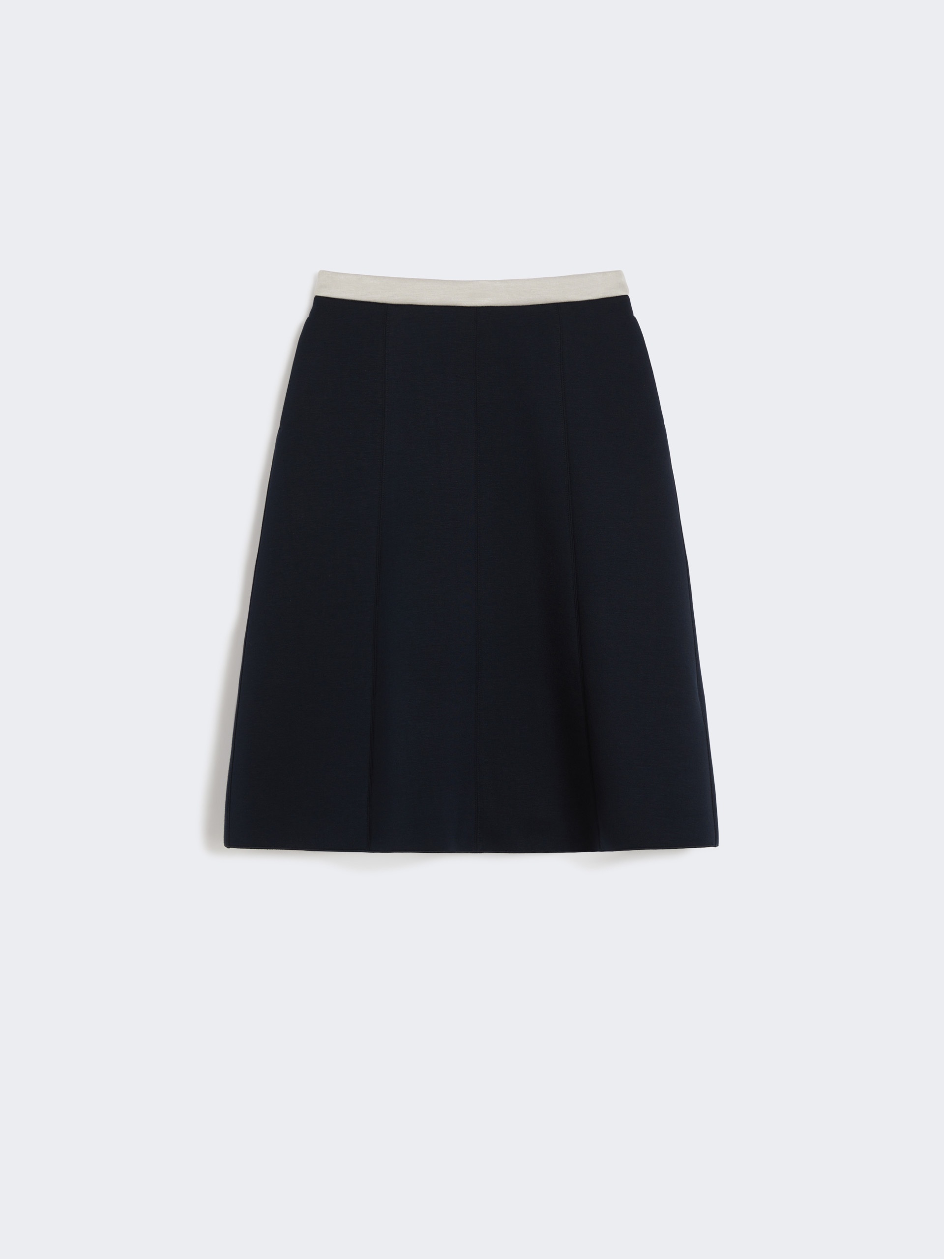 DETAILS Midi skirt with a vertical seam motif that highlights the silhouette. - Bonded viscose jersey skirt - Slightly flared line - Regular waist with contrasting waistband - Back zip fastening - Side inset pockets - Unlined COMPOSITION AND CARE 96% viscose, 4% elastane. Hand wash cold (40°c max); do not bleach; do not tumble dry; drip line drying in the shade; cool iron; do not dry clean; do not wet clean.; iron with a cloth between.; using neutral detergent.; don’t rub.; turn the articles inside out before washing.; to be ironed on reverse. Distributed by Max Mara S.r.l., registered office in Reggio Emilia (Italy), Via Giulia Maramotti 4, 42124 (IT)
