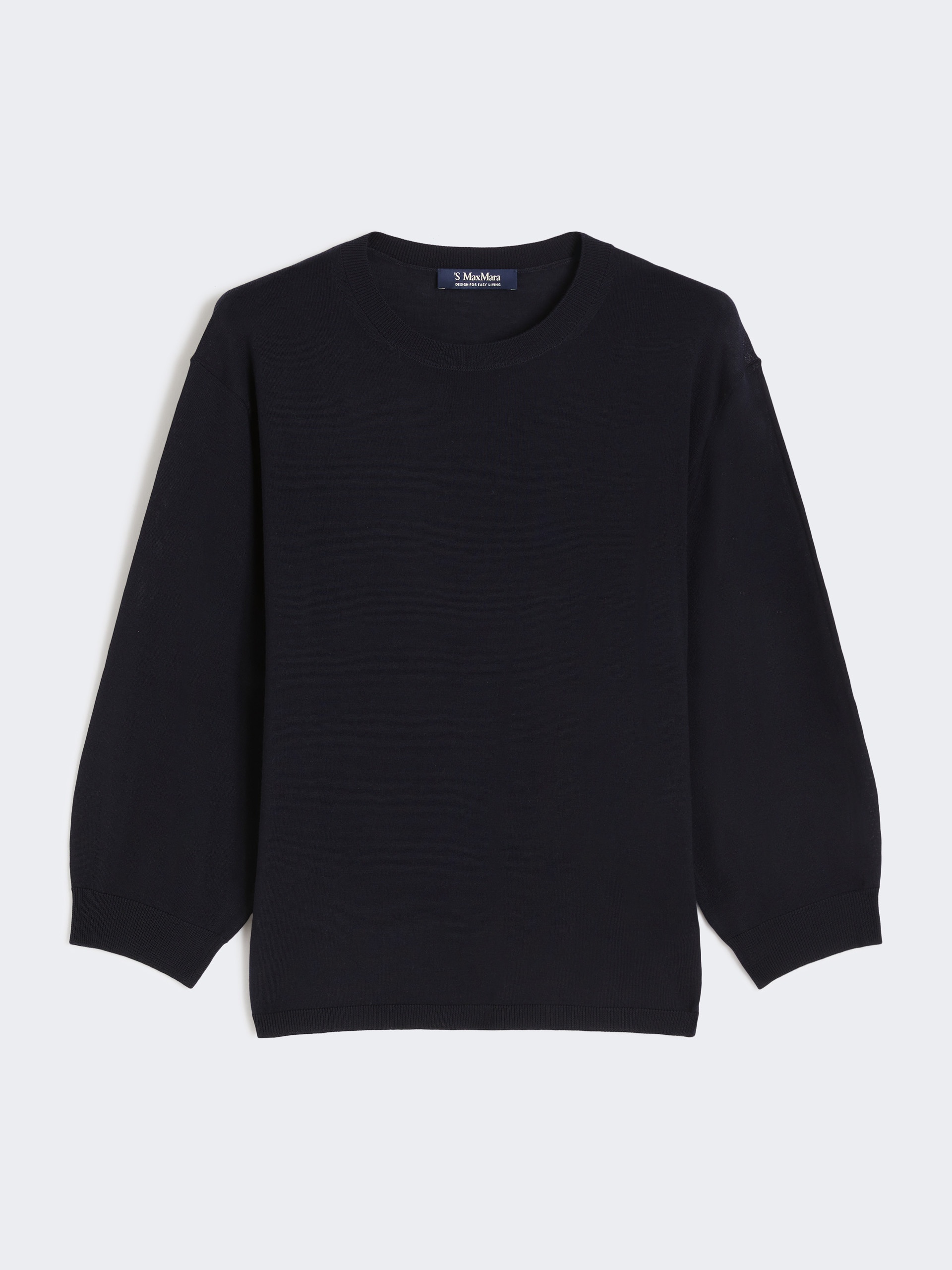 DETAILS Straight-cut jumper distinguished by relaxed fit. - Fine pure wool yarn jumper - Crew neck - Three-quarter sleeves with dropped shoulders - Straight hem - Ribbed edges COMPOSITION AND CARE 100% virgin wool. Hand wash cold; do not bleach; do not tumble dry; flat drying in the shade; cool iron; professionally dry clean perchloroethylene - mild process; do not wet clean.; iron with a cloth between.; using neutral detergent.; turn the articles inside out before washing.; to be ironed on reverse. Distributed by Max Mara S.r.l., registered office in Reggio Emilia (Italy), Via Giulia Maramotti 4, 42124 (IT)