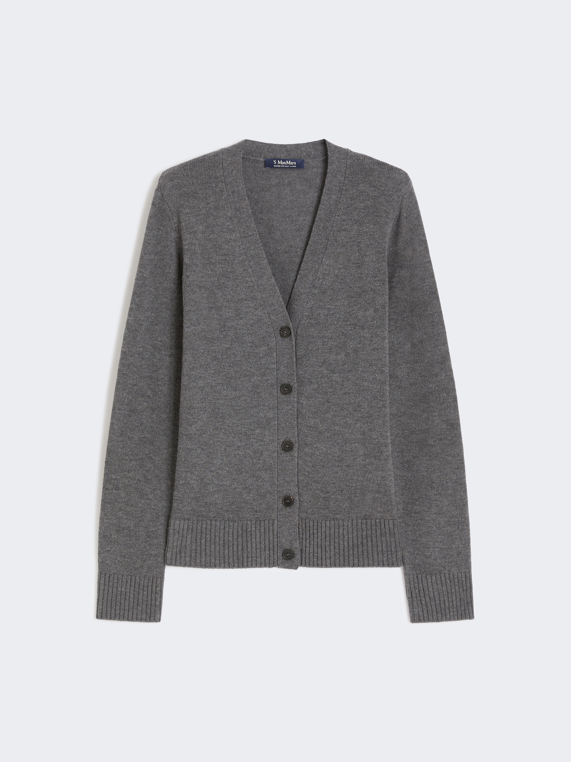 DETAILS Mannish cardigan featuring camel-coloured knitted elbow patches, complete with embossed Max Mara logo detail. - Pure wool yarn cardigan - Relaxed fit - V-neck - Drop-shoulder long sleeves - Front fastening comprising 4-hole horn buttons - Rib-knit cuffs and trim COMPOSITION AND CARE 100% wool. Hand wash cold; do not bleach; do not tumble dry; flat drying in the shade; cool iron; professionally dry clean perchloroethylene - mild process; do not wet clean.; iron with a cloth between.; using neutral detergent.; turn the articles inside out before washing.; to be ironed on reverse.; do not iron the decoration. Distributed by Max Mara S.r.l., registered office in Reggio Emilia (Italy), Via Giulia Maramotti 4, 42124 (IT)