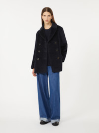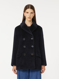 DETAILS Double-breasted jacket with an extremely soft and fluffy texture. Jacket in wool and alpaca fabric Straight fit Lapel collar and long set-in sleeves Horn button fastening Side-inset pockets with a front flap Central rear slit Lined model COMPOSITION AND CARE Fabric 62% alpaca, 38% virgin wool; lining 69% acetate, 31% cupro. Do not wash; do not bleach; do not tumble dry; cool iron; professionally dry clean perchloroethylene - mild process; do not wet clean.; wash the garment while it is fastened.; do not iron the buttons.; protect buttons before washing.; turn the articles inside out before washing.; contains non-textile parts of animal origin. Distributed by Max Mara S.r.l., registered office in Reggio Emilia (Italy), Via Giulia Maramotti 4, 42124 (IT)
