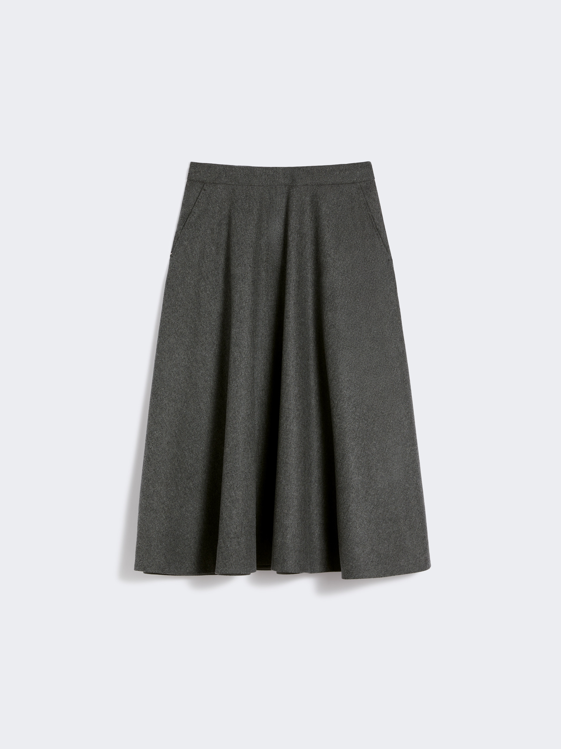 DETAILS Feminine long flared skirt. Stretch wool flannel skirt Mid-rise Concealed zip fastening at the back Slant side pockets Unlined model COMPOSITION AND CARE Fabric 98% virgin wool, 2% elastane; lining 100% cotton. Do not wash; do not bleach; do not tumble dry; cool iron; professionally dry clean perchloroethylene - mild process; do not wet clean. Distributed by Max Mara S.r.l., registered office in Reggio Emilia (Italy), Via Giulia Maramotti 4, 42124 (IT)