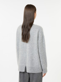 DETAILS Incredibly fluffy jumper, with seams on the sides and back. Brushed, pure cashmere yarn jumper Relaxed fit Crew neck Long sleeves with dropped shoulders Ribbed edges Slightly asymmetrical hem with small slit at the back COMPOSITION AND CARE 100% cashmere. Hand wash cold (40°c max); do not bleach; do not tumble dry; flat drying in the shade; cool iron; professionally dry clean perchloroethylene - mild process; do not wet clean.; iron with a cloth between.; using neutral detergent.; turn the articles inside out before washing.; to be ironed on reverse. Distributed by Max Mara S.r.l., registered office in Reggio Emilia (Italy), Via Giulia Maramotti 4, 42124 (IT)