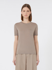 DETAILS Crew-neck jumper with an essential T-shirt style. Fine pure wool yarn jumper Straight cut Short set-in sleeves Patch pocket on the chest Embellished with contrasting details COMPOSITION AND CARE 100% virgin wool. Hand wash cold (40°c max); do not bleach; do not tumble dry; flat drying in the shade; cool iron; professionally dry clean perchloroethylene - mild process; do not wet clean.; iron with a cloth between.; using neutral detergent.; turn the articles inside out before washing.; to be ironed on reverse. Distributed by Max Mara S.r.l., registered office in Reggio Emilia (Italy), Via Giulia Maramotti 4, 42124 (IT)