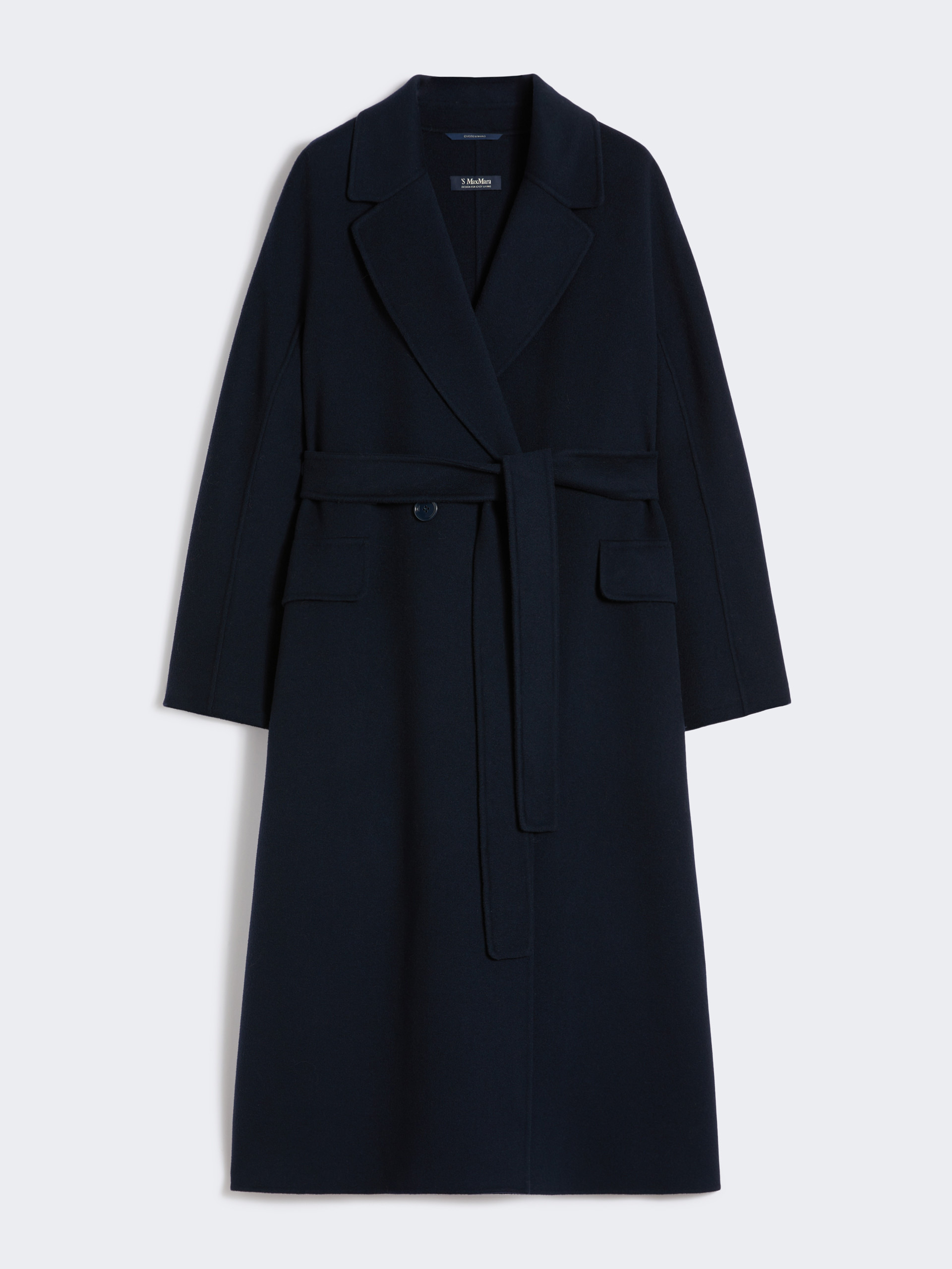 DETAILS Long, double-breasted coat with a distinctive oversized fit. Coat made from hand-sewn, pure wool drap Flared lines and wide central slit at the back Lapel collar Long kimono sleeves Fastening with visible buttons and matching belt Inset side pockets with applied flap at the front Unlined COMPOSITION AND CARE Fabric 100% virgin wool; - except joining thread. Do not wash; do not bleach; do not tumble dry; cool iron; professionally dry clean perchloroethylene - mild process; do not wet clean.; wash the garment while it is fastened.; turn the articles inside out before washing. Distributed by Max Mara S.r.l., registered office in Reggio Emilia (Italy), Via Giulia Maramotti 4, 42124 (IT)