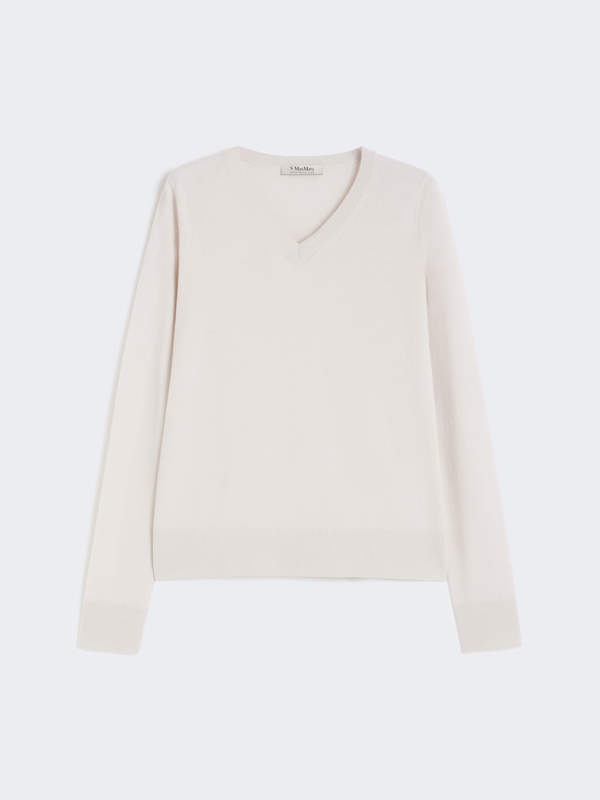 DETAILS Figure hugging jumper that highlights the silhouette. Pure wool yarn jumper Regular fit V neck Long set-in sleeves Rib-knit edges COMPOSITION AND CARE 100% wool. Hand wash cold (40°c max); do not bleach; do not tumble dry; flat drying in the shade; cool iron; professionally dry clean perchloroethylene - mild process; do not wet clean.; iron with a cloth between.; using neutral detergent.; turn the articles inside out before washing.; to be ironed on reverse. Distributed by Max Mara S.r.l., registered office in Reggio Emilia (Italy), Via Giulia Maramotti 4, 42124 (IT)