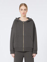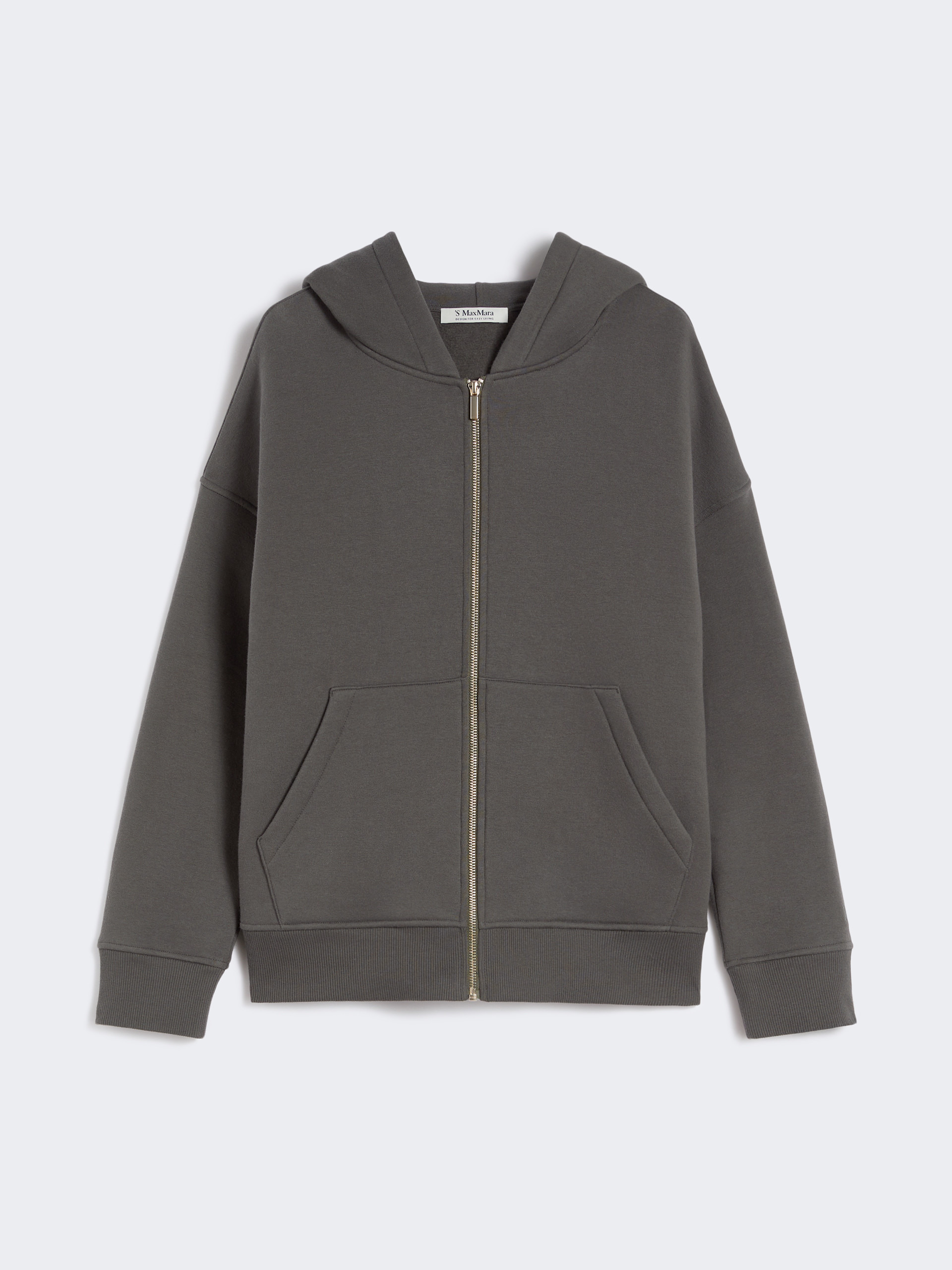DETAILS Hoodie customised with small, embroidered logo on the left cuff. Brushed cotton jersey sweatshirt Regular fit Long sleeves with dropped shoulders Zip fastening Pouch pockets on the front Ribbed cuffs and hem COMPOSITION AND CARE Jersey fabric 88% cotton, 8% polyamide, 4% elastane; - exclusive of embroideries. Machine wash cold delicate cycle; do not bleach; do not tumble dry; flat drying in the shade; cool iron; professionally dry clean perchloroethylene - mild process; professional wet cleaning - very mild process.; iron with a cloth between.; using neutral detergent.; turn the articles inside out before washing.; to be ironed on reverse. Distributed by Max Mara S.r.l., registered office in Reggio Emilia (Italy), Via Giulia Maramotti 4, 42124 (IT)