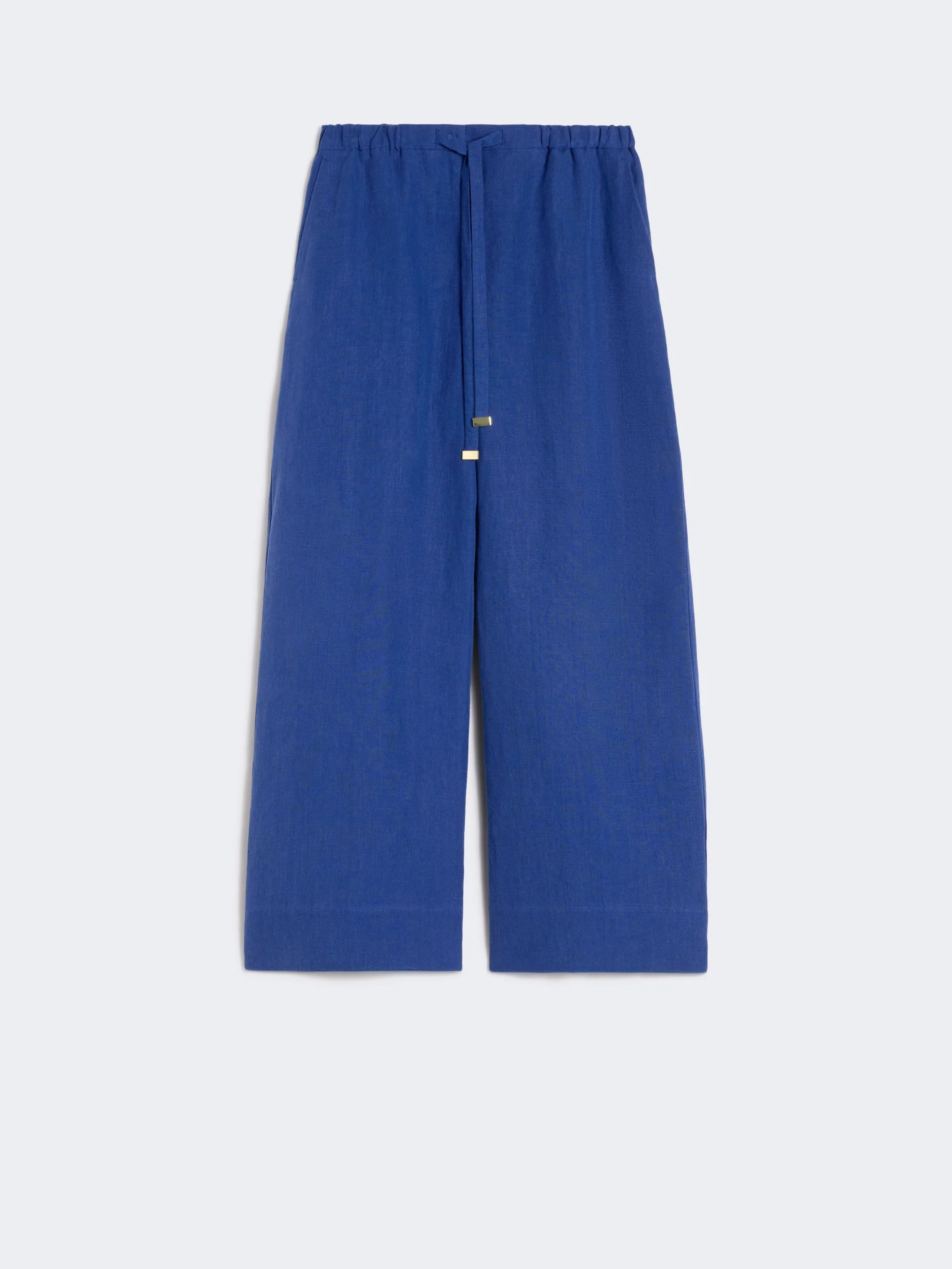 DETAILS Jogging-inspired trousers with a wide fit, cropped to the ankle. - Trousers in pure linen canvas - Wide leg - Drawstring-adjustable elasticated waist - Fly-covered zip and small hook-and-bar fastening - Slant side pockets COMPOSITION AND CARE 100% flaxlinen. Hand wash cold (40°c max); do not bleach; do not tumble dry; line drying in the shade; cool iron; professionally dry clean perchloroethylene - mild process; do not wet clean.; wash the garment while it is fastened.; do not iron the buttons.; protect buttons before washing.; protect the ends stoppers and/or the cord ends before washing.; turn the articles inside out before washing.; contains non-textile parts of animal origin. Distributed by Max Mara S.r.l., registered office in Reggio Emilia (Italy), Via Giulia Maramotti 4, 42124 (IT) Collection: 'S Max Mara Product code: 9131076306005 - SMMAURORA