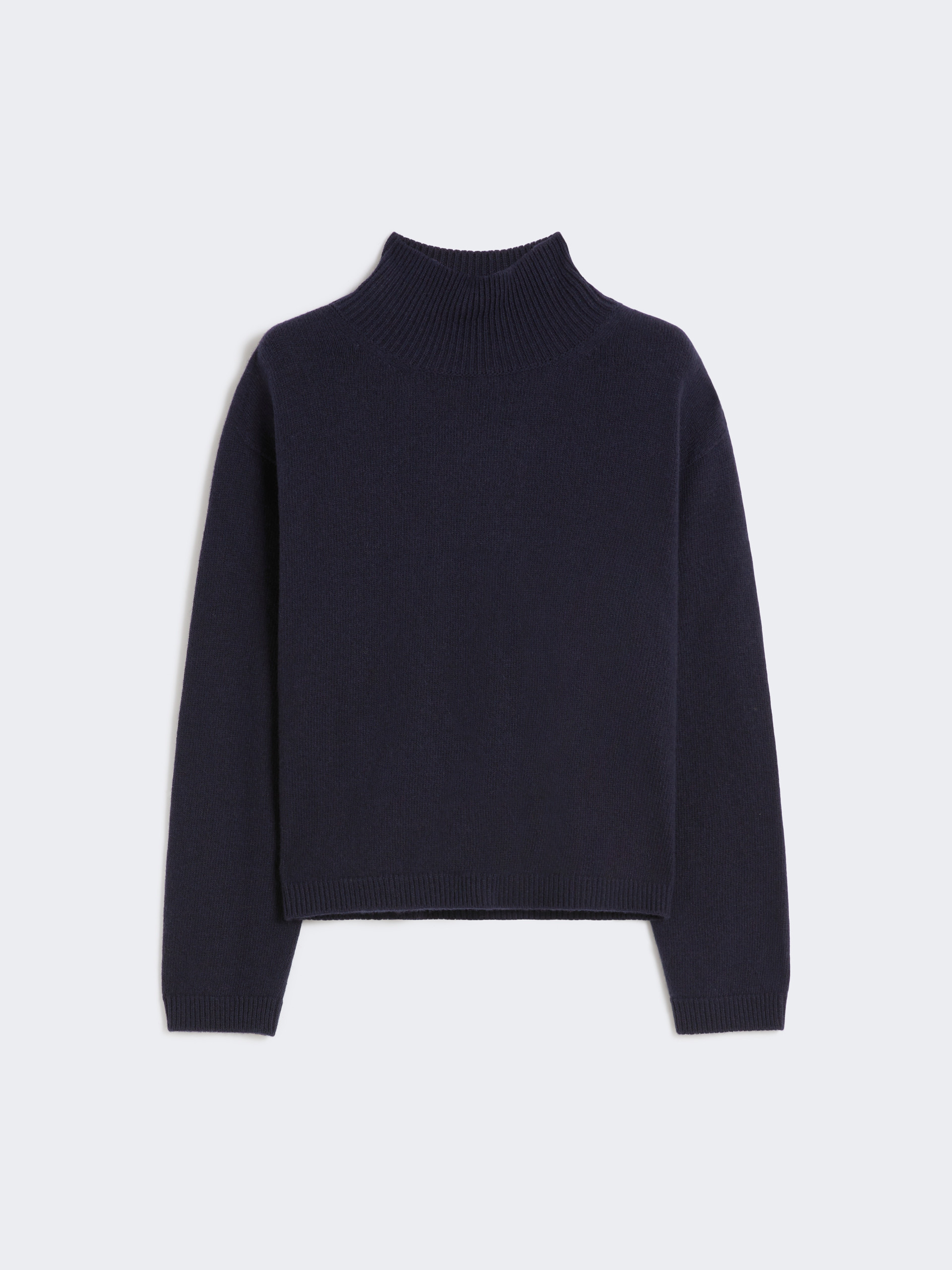 DETAILS Boxy-fit polo-neck sweater with a cropped waist cut. Wool and cashmere yarn sweater Mini cut and a relatively loose bodice High neck Drop-shoulder long sleeves Rib-knit trims Straight hem COMPOSITION AND CARE 80% wool, 20% cashmere. Hand wash cold (40°c max); do not bleach; do not tumble dry; flat drying in the shade; cool iron; professionally dry clean perchloroethylene - mild process; do not wet clean.; iron with a cloth between.; using neutral detergent.; turn the articles inside out before washing.; to be ironed on reverse. Distributed by Max Mara S.r.l., registered office in Reggio Emilia (Italy), Via Giulia Maramotti 4, 42124 (IT)