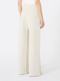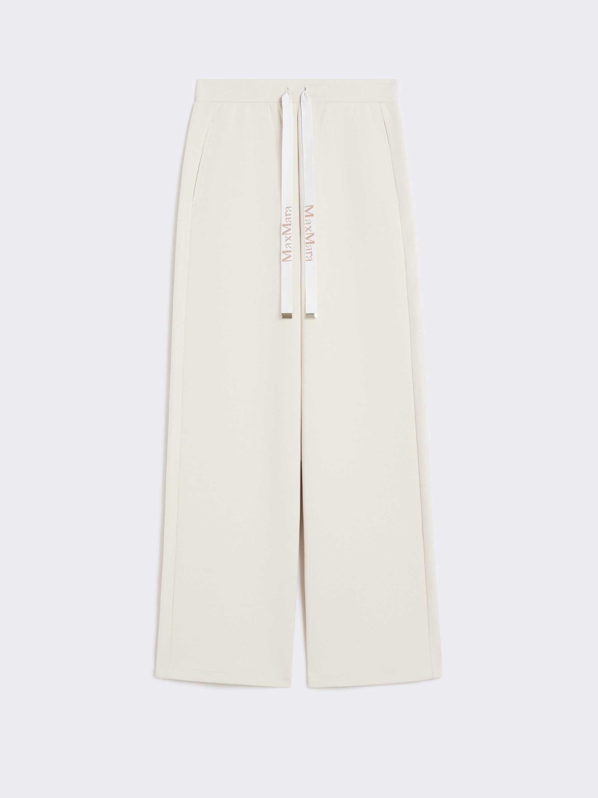 DETAILS Joggers distinguished by a wide-leg silhouette. Cotton jersey trousers Straight cut Elasticated waist with drawstring Side inset pockets Welt pocket on the back, right-hand side Logo ribbons COMPOSITION AND CARE 78% cotton, 22% polyester. Machine wash cold delicate cycle; do not bleach; do not tumble dry; flat drying in the shade; cool iron; professionally dry clean perchloroethylene - mild process; professional wet cleaning - very mild process.; iron with a cloth between.; using neutral detergent.; protect accessories before washing.; turn the articles inside out before washing.; to be ironed on reverse. Distributed by Max Mara S.r.l., registered office in Reggio Emilia (Italy), Via Giulia Maramotti 4, 42124 (IT)