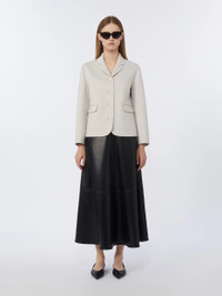 DETAILS Single-breasted jacket with a straight, petite fit. - Jacket in hand-sewn double-faced pure wool broadcloth - Small lapel collar - Set-in sleeves with buttoned hem detail - Visible button fastening on the front - Flap welt pockets on the front - Central rear slit COMPOSITION AND CARE Fabric 100% virgin wool; - except joining thread; lining 100% silk. Do not wash; do not bleach; do not tumble dry; cool iron; professionally dry clean perchloroethylene - mild process; do not wet clean.; wash the garment while it is fastened.; turn the articles inside out before washing. Distributed by Max Mara S.r.l., registered office in Reggio Emilia (Italy), Via Giulia Maramotti 4, 42124 (IT) Collection: 'S Max Mara Product code: 9041096106027 - SMMMAGIA