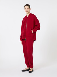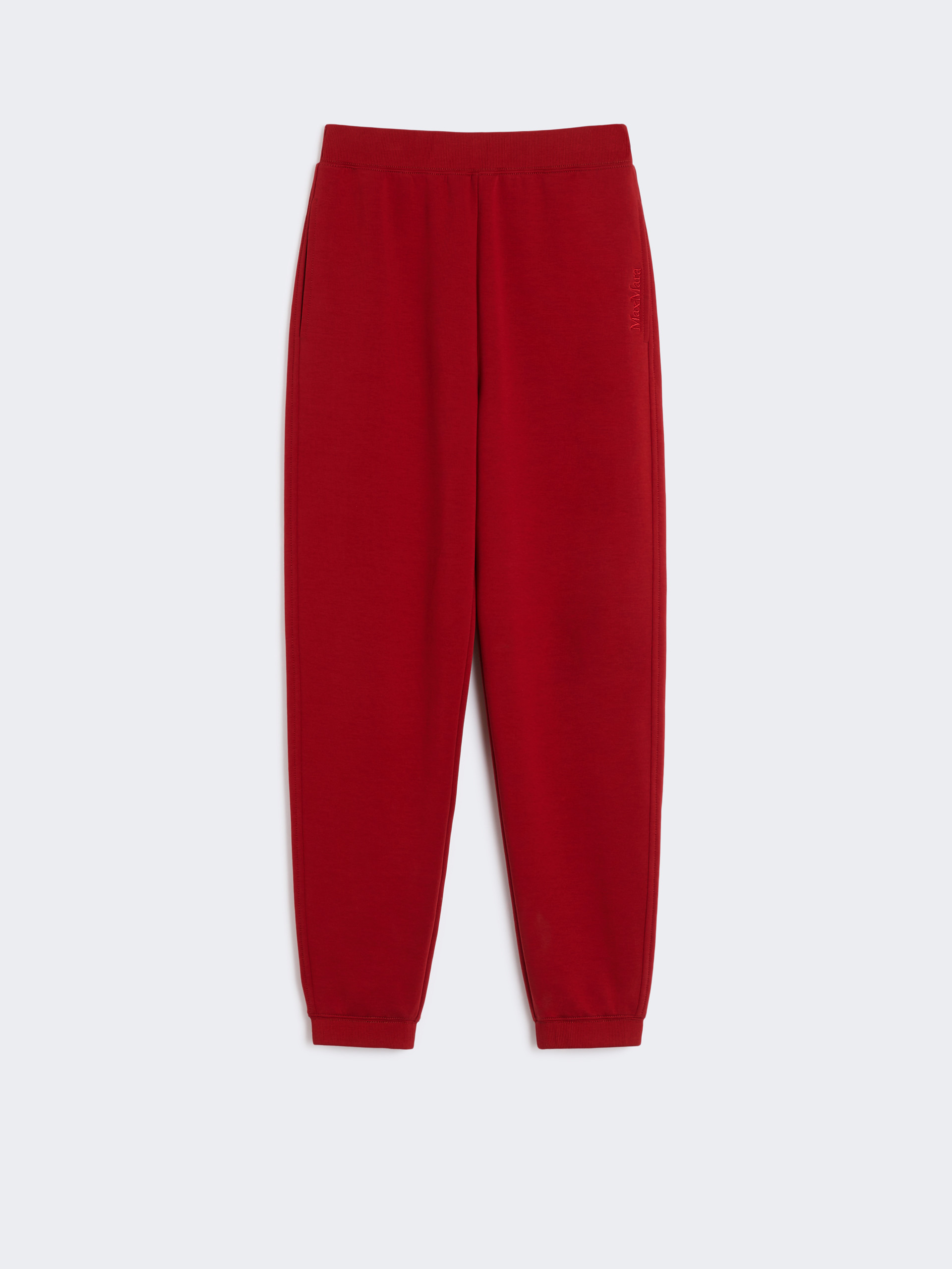 DETAILS Jogger-style trousers featuring ribbed elasticated inserts at the waist and ankles. Technical cotton jersey trousers Relaxed fit In-seam side pockets The left pocket is embroidered with small Max Mara logo detail COMPOSITION AND CARE Jersey fabric 78% cotton, 22% polyester; - exclusive of embroideries. Machine wash cold delicate cycle; do not bleach; do not tumble dry; flat drying in the shade; cool iron; professionally dry clean perchloroethylene - mild process; professional wet cleaning - very mild process.; iron with a cloth between.; using neutral detergent.; turn the articles inside out before washing.; to be ironed on reverse. Distributed by Max Mara S.r.l., registered office in Reggio Emilia (Italy), Via Giulia Maramotti 4, 42124 (IT)