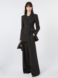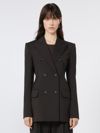 DETAILS Double-breasted blazer with tailored construction, with darts and side panels that outline a feminine silhouette. The peak lapel and slanted pocket recall men's models. Tailored blazer in pure natural stretch wool canvas with internal lining Fitted Collar with peak lapels Double-breasted closure with visible buttons Flapped side pockets Regular fit COMPOSITION AND CARE Fabric 100% virgin wool; lining 70% acetate, 30% polyester; sleeves lining 97% viscose, 3% acetate. Do not wash; do not bleach; do not tumble dry; cool iron; professionally dry clean perchloroethylene - mild process; do not wet clean.; put this item into a string bag before washing it.; wash the garment while it is fastened. Distributed by Max Mara S.r.l., registered office in Reggio Emilia (Italy), Via Giulia Maramotti 4, 42124 (IT)