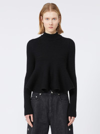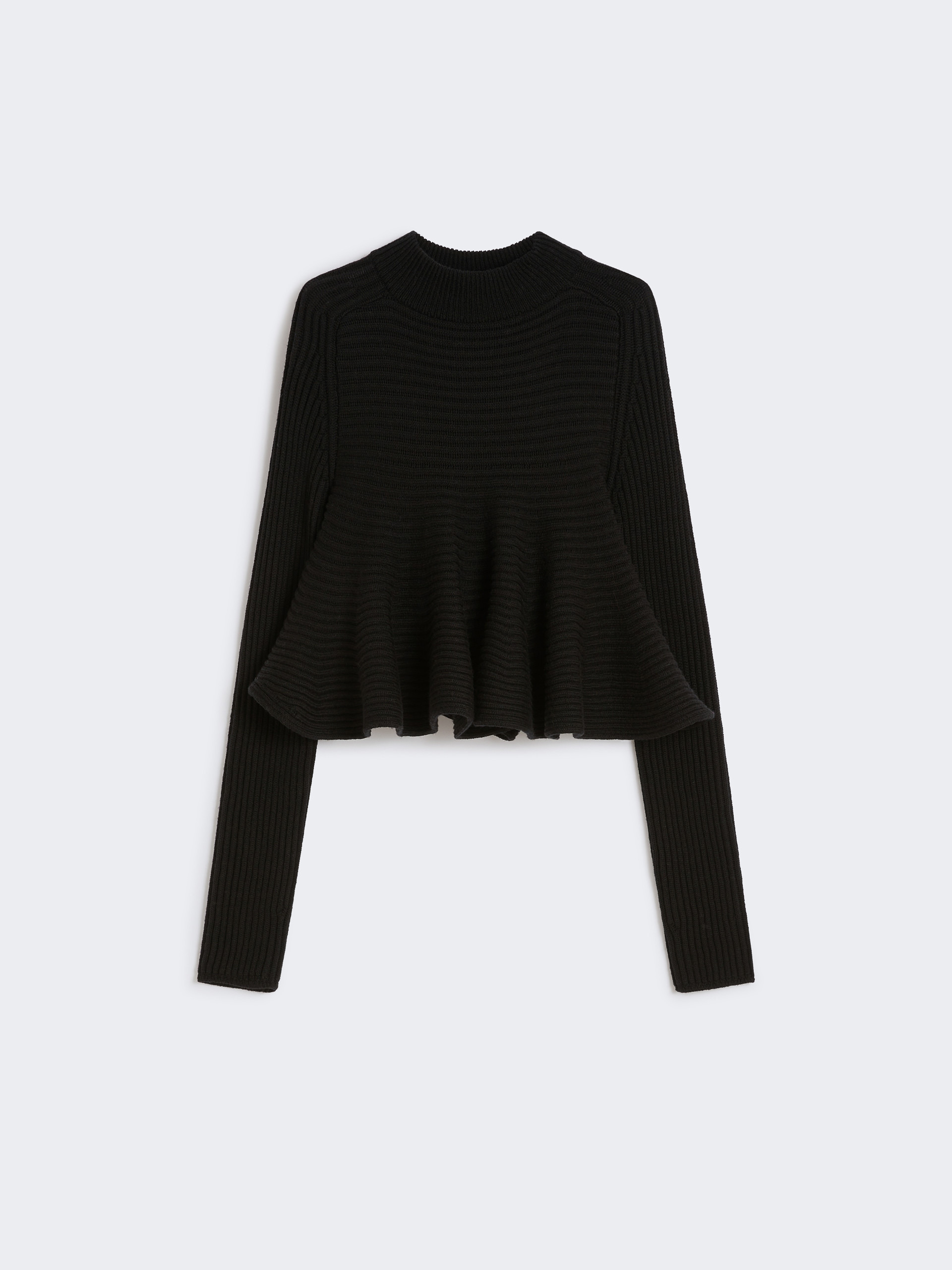 DETAILS Baby-doll style jumper, wide and flared at the hem. Crafted from pure wool, it features a rounded neckline and saddle sleeves. Pure virgin wool yarn jumper Relaxed fit Rounded neckline Saddle sleeves Visible fully fashioned decreases Regular fit COMPOSITION AND CARE 100% virgin wool. Hand wash cold (40°c max); do not bleach; do not tumble dry; flat drying in the shade; cool iron; professionally dry clean perchloroethylene - mild process; do not wet clean.; iron with a cloth between.; using neutral detergent. Distributed by Max Mara S.r.l., registered office in Reggio Emilia (Italy), Via Giulia Maramotti 4, 42124 (IT)