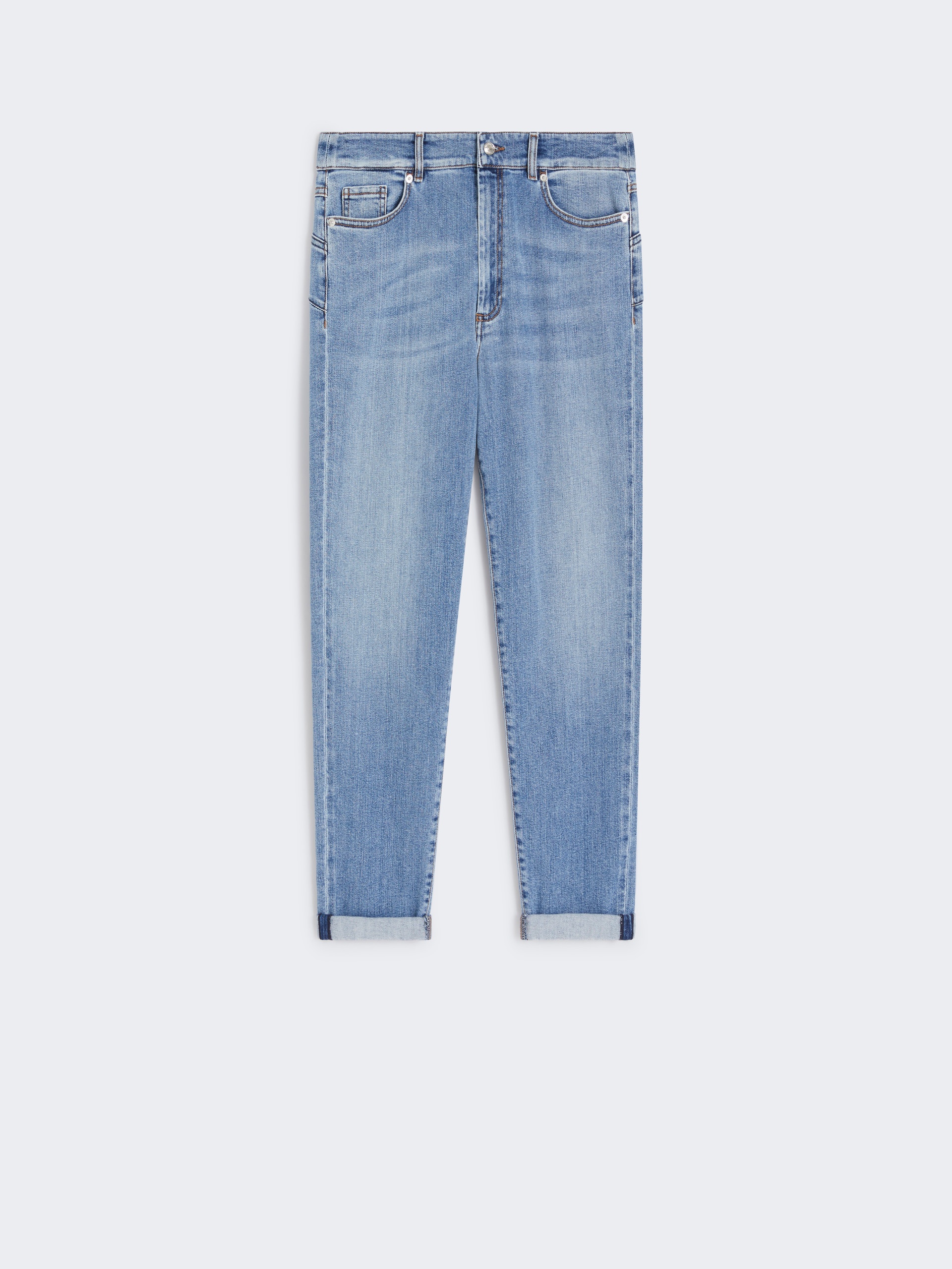 DETAILS Boyfriend jeans made with Perfect Fit construction. The dark wash and iconic details are completed by a turn-up hem and custom label. Perfect-fit jeans in authentic indigo stretch denim, with a medium vintage and dark vintage worn look. Soft boyfriend fit, with low waist and crotch 5-pocket construction with custom tack button Turn-ups at the hem Contrast stitching with tobacco thread and personalized rear label Regular fit COMPOSITION AND CARE 99% cotton, 1% elastane. Machine wash cold delicate cycle; do not bleach; do not tumble dry; line drying in the shade; cool iron; do not dry clean.; wash the garment while it is fastened.; do not iron the buttons.; take care when wearing light-coloured clothes or accessories because, with the heat of the body, the indigo fabric , may fade and stain. be careful while sitting on light coloured surfaces, especially if wet. wash garments separately and always turned inside out. hang the garment turned inside out by avoiding to expose it to direct sunlight. avoid removing isolated stains.; contains non-textile parts of animal origin. Distributed by Max Mara S.r.l., registered office in Reggio Emilia (Italy), Via Giulia Maramotti 4, 42124 (IT)