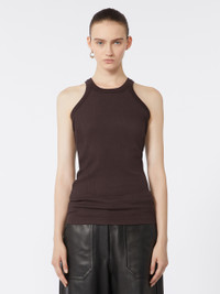 DETAILS Iconic design tank top with a slightly halter collar. Crafted from stretch cotton and silk for a more refined look. Stretch cotton and silk knit tank top Fitted Halter neck Ribbed trim edges Fit COMPOSITION AND CARE 67% cotton, 30% silk, 3% elastane. Hand wash cold (40°c max); do not bleach; do not tumble dry; drip line drying in the shade; cool iron; professionally dry clean perchloroethylene - mild process; do not wet clean.; iron with a cloth between.; using neutral detergent.; don’t rub.; turn the articles inside out before washing.; to be ironed on reverse. Distributed by Max Mara S.r.l., registered office in Reggio Emilia (Italy), Via Giulia Maramotti 4, 42124 (IT)
