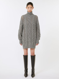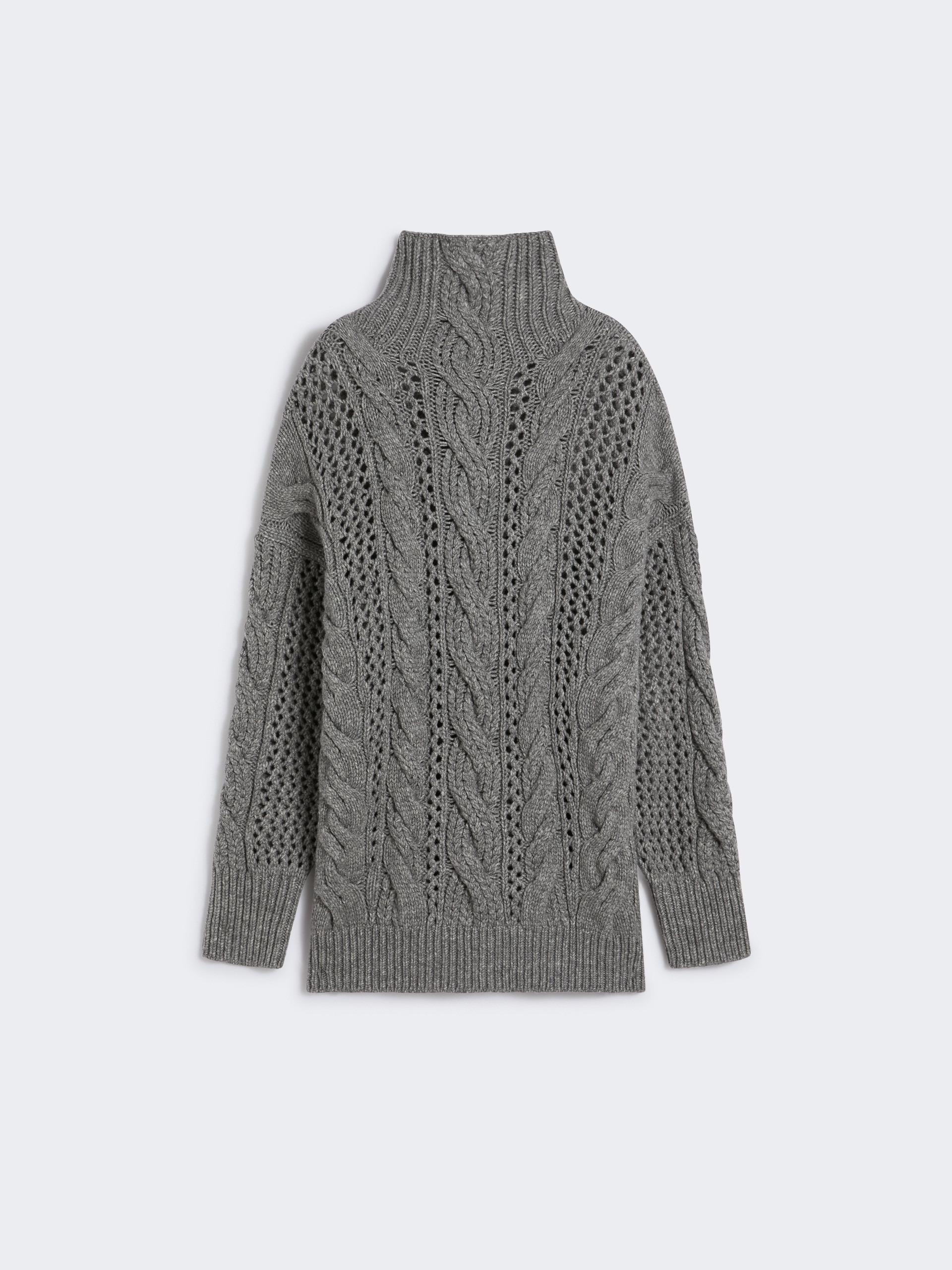 DETAILS Oversized jumper featuring intricate detailing, with cable knits and openwork on the body and sleeves. Made in a soft, warm wool blend yarn. Wool-blend jumper Oversize fit High neck Cable knit and openwork stitch motif on the body and sleeves Ribbed finish on the neck, cuffs and hem Wide fit COMPOSITION AND CARE 70% wool, 30% polyamide. Do not wash; do not bleach; do not tumble dry; cool iron; professionally dry clean perchloroethylene - mild process; do not wet clean.; iron with a cloth between. Distributed by Max Mara S.r.l., registered office in Reggio Emilia (Italy), Via Giulia Maramotti 4, 42124 (IT)