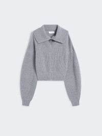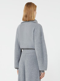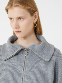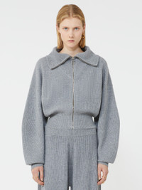 DETAILS Cardigan made of a wool and cashmere blend, with a soft feel and loose volumes. The wide collar opens with a zip and is worn draped over the shoulders. Wool and cashmere cardigan Loose at the bust and fitted at the waist High, turn-up neck Opening with metal zip and customised slider Dropped shoulders Wide sleeves that tighten at the wrist Regular fit COMPOSITION AND CARE 80% wool, 20% cashmere. Hand wash cold (40°c max); do not bleach; do not tumble dry; flat drying in the shade; cool iron; professionally dry clean perchloroethylene - mild process; do not wet clean.; iron with a cloth between.; using neutral detergent.; protect accessories before washing. Distributed by Max Mara S.r.l., registered office in Reggio Emilia (Italy), Via Giulia Maramotti 4, 42124 (IT)