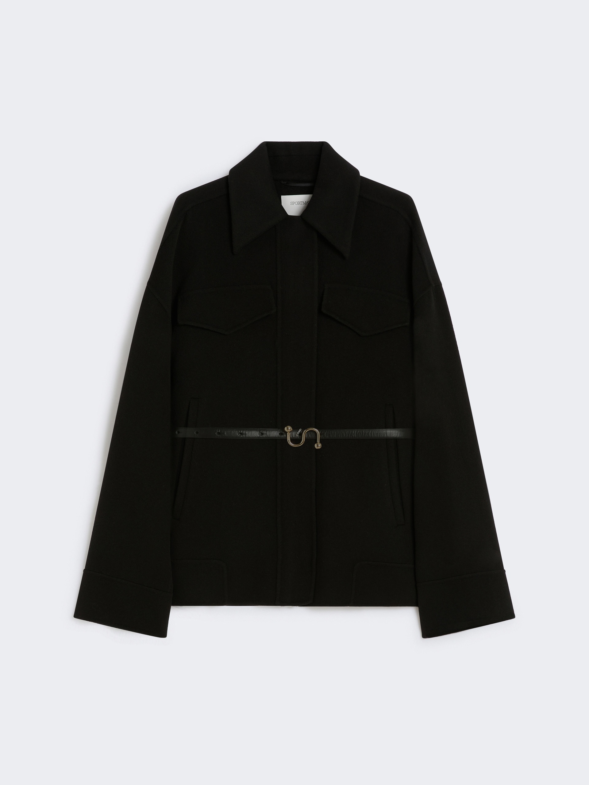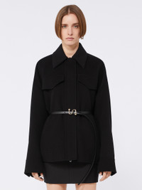 DETAILS Bomber inspiration for this pea coat in soft double wool. Model with thin belt in real leather and gold metal S-buckle. Double pure-wool drap pea coat. Regular fit Shirt collar with concealed zip fastening Dropped shoulder with long shirt sleeve Inset pockets with shaped flap and leather belt with S-buckle Regular fit COMPOSITION AND CARE Short coat fabric 100% virgin wool; - except joining thread; with belt in cattle. Short coat: do not wash; do not bleach; do not tumble dry; cool iron; professionally dry clean perchloroethylene - mild process; do not wet clean. Belt: do not wash; do not bleach; do not tumble dry; do not iron; do not dry clean; do not wet clean. Distributed by Max Mara S.r.l., registered office in Reggio Emilia (Italy), Via Giulia Maramotti 4, 42124 (IT)