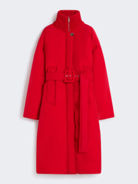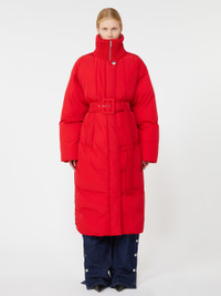 DETAILS Long, enveloping down jacket, secured at the waist with a matching belt. Raised knit collar and side pockets with large flap. Water-repellent technical fabric down jacket with crinkle effect and goose down Straight fit Raised knit collar Hidden front zip opening and visible, custom top button. Belt with buckle Flapped side pockets Lined Wide fit COMPOSITION AND CARE Fabric 100% polyamide; lining 100% polyamide; with quilting in 100% polyester; with knitted details 100% polyester; with quilting virgin down. Machine wash cold delicate cycle; do not bleach; do not tumble dry; line drying in the shade; cool iron; professionally dry clean perchloroethylene - mild process.; wash the garment while it is fastened.; turn the articles inside out before washing.; remove the belt before washing.; contains non-textile parts of animal origin. Distributed by Max Mara S.r.l., registered office in Reggio Emilia (Italy), Via Giulia Maramotti 4, 42124 (IT)