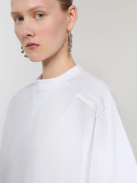 DETAILS A contemporary evolution of the boxy t-shirt, designed with an original crater neck emphasised by the ribbed insert. The fit is straight over the torso with small on-tone logo printed on the left shoulder. - Pure cotton T-shirt - Boxy cut - Crater neck with rib-knit insert - Front yoke - Stitching motif along the edges - Regular fit COMPOSITION AND CARE 100% cotton. Hand wash cold (40°c max); do not bleach; do not tumble dry; flat drying in the shade; cool iron; do not dry clean; do not wet clean.; iron with a cloth between.; using neutral detergent.; don’t rub.; turn the articles inside out before washing.; to be ironed on reverse. Distributed by Max Mara S.r.l., registered office in Reggio Emilia (Italy), Via Giulia Maramotti 4, 42124 (IT) Collection: Sportmax Product code: 2941036506001 - SPDMASSA